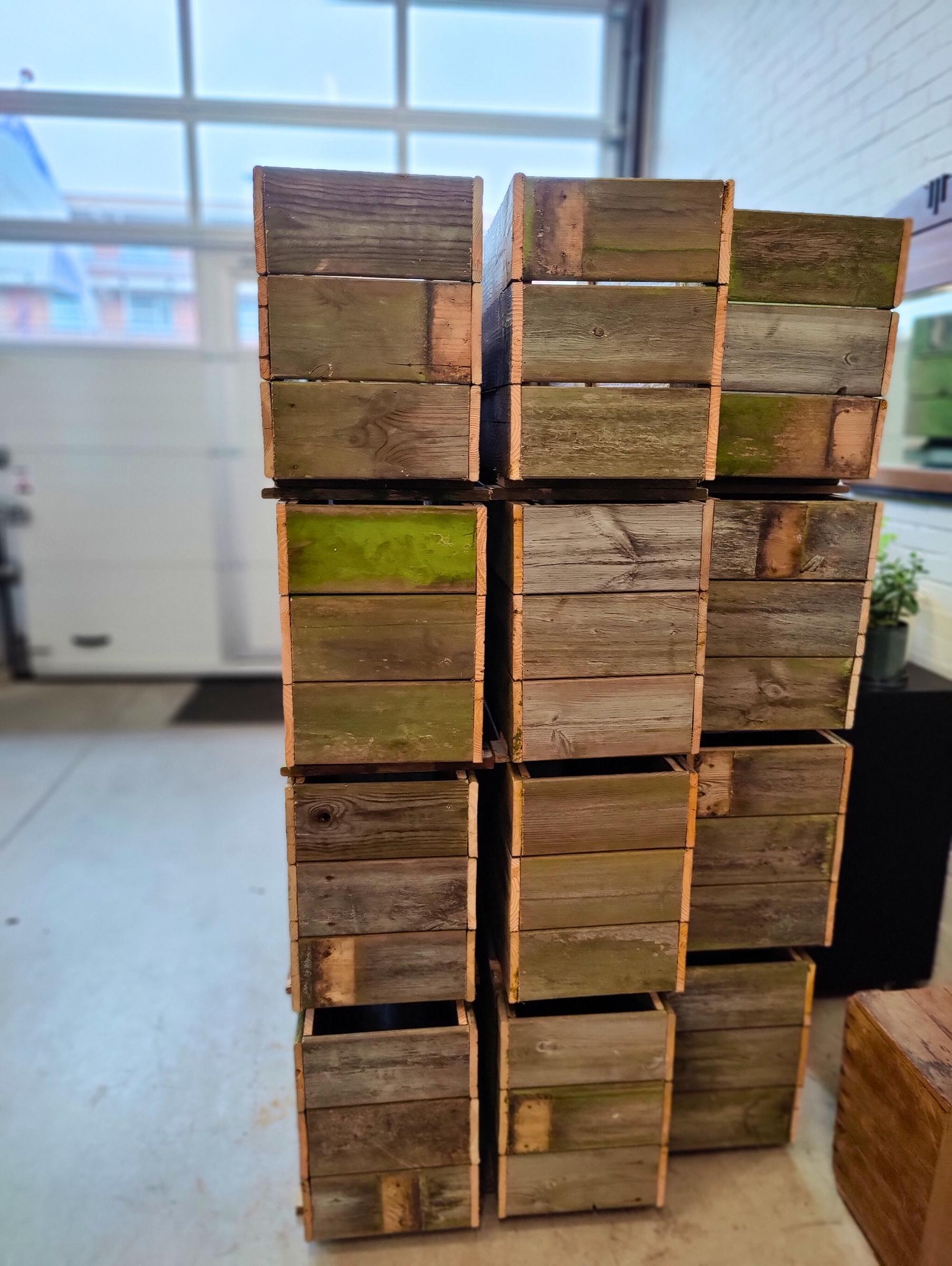 In opdracht van New Horizon Oogstbedrijf maakten we deze plantenbakken van schuttingdelen, door hen geoogst tijdens het sloopproject in het Witte Dorp in Nieuw Krispijn Een aantal bakken zijn inmiddels beplant door bewoners om de omgeving rondom de bouwplaats op te fleuren