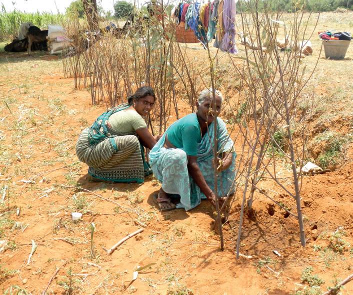 IN HET ZUID-INDIASE DISTRICT DINDIGUL IS HET GRONDWATERPEIL DOOR KLIMAATVERANDERING TIENTALLEN METERS GEDAALD. ALS GEVOLG WORDEN KLEINE BOEREN VAN HUN LAND GEDREVEN, EN GEDWONGEN OM IN KLEDINGFABRIEKEN EN VERGELIJKBARE INDUSTRIEËN TE WERKEN. DIT WERK BIEDT WEINIG PERSPECTIEF EN VINDT PLAATS ONDER SLECHTE OMSTANDIGHEDEN. EEN VAN DE BOEREN DIE DOOR DROOGTE IN DE KNEL DREIGDE TE KOMEN, IS MRS. AMALORPAVAM UIT HET DORP A.VELLODU. ONZE PLAATSELIJKE PARTNER HIELP HAAR OM LANDBOUWGROND TE HERSTELLEN EN DE OOGST WEER TE LATEN SLAGEN.