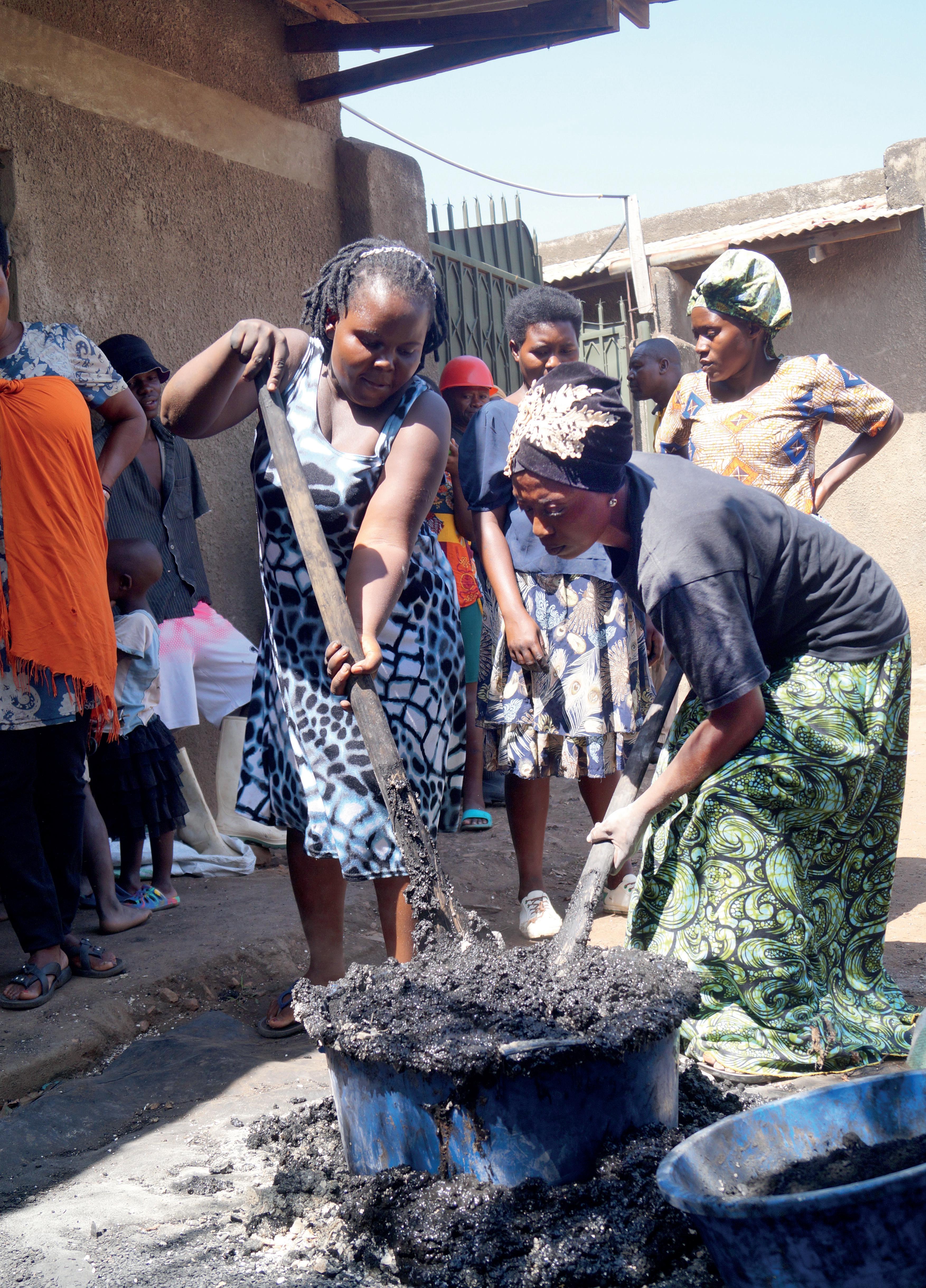 De vrouwen van het Vastenactiecampagneproject 2025 in Kasese, Oeganda, verzamelen op straat zwerfafval dat vervolgens wordt gesorteerd en verkoold. Dat vormt de basis voor de productie van briketten voor de dagelijkse kookvuren. Dat scheelt geld, spaart het oerwoud, brandt schoner én vermindert het zwerfafval op straat!