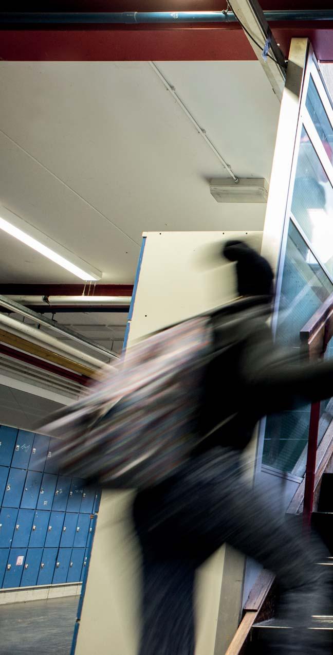 MARIANNE VAN DIJK, DOCENT KLASSIEKE TALEN HET HOOGHUIS, LOCATIE TITUS BRANDSMALYCEUM, ‘Ik ben het hiermee grotendeels eens. We zien ons onderwijs vaak als route naar het eindexamen. Deels noodgedwongen: Inspectie en ouders willen resultaten zien. Het kan ook anders. Twee jaar geleden heb ik de bovenbouw Grieks voorgesteld om in de herfstvakantie te gaan studeren aan de universiteit van Exeter. Zeven leerlingen zijn meegegaan en ze vonden het geweldig. Ze wilden voortdurend vertalen en zeiden achteraf dat ze nog nooit zoveel hadden gelachen. Ik vind het de taak van docenten om de leergierigheid van hun leerlingen zoveel mogelijk te prikkelen. Daar kunnen mooie dingen uit voortkomen. Maar ik heb de indruk dat we hun nieuwsgierigheid, mede door alle regels en prestatiedruk, vaak toch de kop indrukken.’ ◗