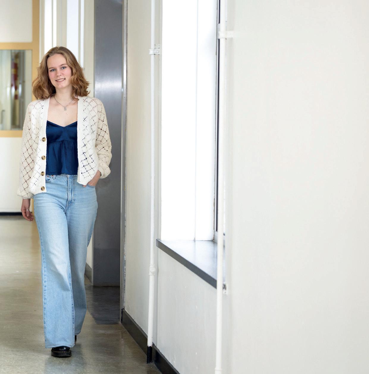 “Als we veel toetsen hebben en ik te laat met leren ben begonnen, heb ik wel eens last van stress. Vóór die tijd denk ik: ik heb de tijd nog wel. En dan valt het tegen. Beter plannen kan helpen, in de mentoruren is daar aandacht voor. Bij mij gaat het om stress op piekmomenten. Dat hoor ik ook van klasgenoten. Het zal vaker voorkomen, denk ik, we krijgen steeds meer toetsen. Er zijn weken waarin we er twee of drie moeten maken. Daar zou de school rekening mee kunnen houden, door toetsen uit te stellen in een drukke periode. We vragen er wel eens om, maar dan horen we dat die toets toch al lang was aangekondigd. Daar zou iets aan gedaan kunnen worden, veel meer kan er volgens mij niet.”