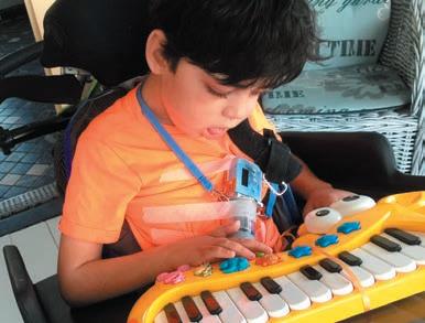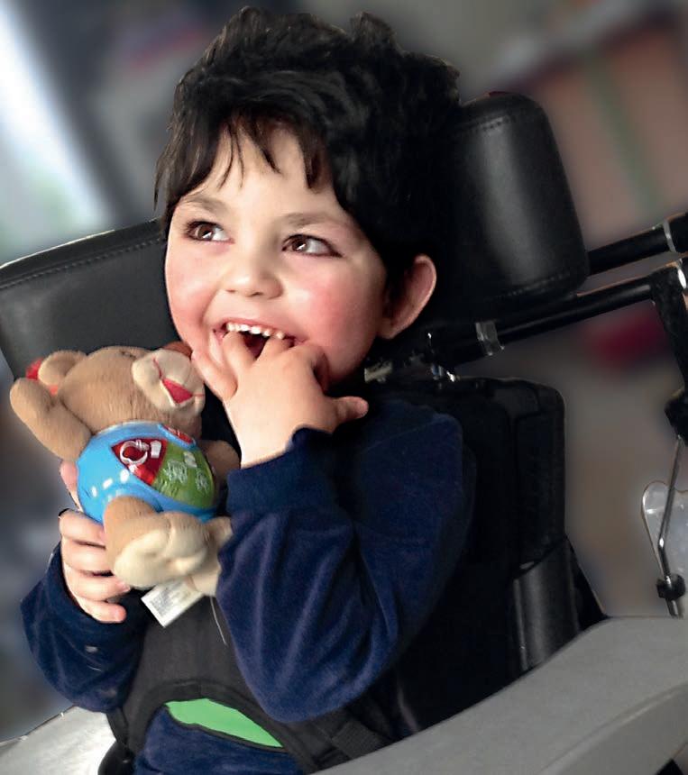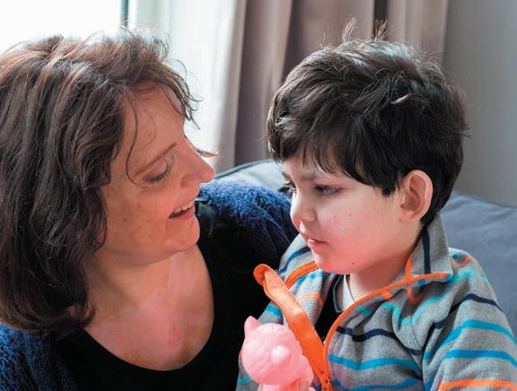 binnen moet krijgen om dat in balans te houden. Dit is een enorme opgave. We helpen hem met het eten, maar het is vaak een strijd.” Het revalidatieteam helpt om een goede balans te vinden tussen activiteiten en rust, al blijft dat lastig. “Als Lucas toch over zijn grenzen gaat wordt hij teruggefloten door zijn lichaam. Hij krijgt dan erge migraine, voelt zich niet lekker en moet dan gaan liggen. Ook beginnen zijn benen te schokken en moet hij soms overgeven van de hoofdpijn.”