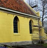 ontvangstruimte met theeschenkerij komen, inclusief een nieuwe entree die ook toegang tot het gebouw biedt voor mensen met een beperking. De huidige toegang tot de kerk is namelijk erg hoog met een lastige trap.’ Het restauratieplan, het ontwerp van de nieuwe uitbouw en de inrichting van de consistorie zijn gereed en Groninger Kerken heeft de benodigde vergunningen binnen. Ook is duidelijk wat er moet gebeuren om de aardbevingsschade te herstellen en het gebouw te versterken. Toch staat de kerk er in het najaar van 2022 nog haveloos bij. ‘We hebben vertraging opgelopen, onder andere doordat de versterkingsoperatie in 20182019 zogenaamd “on hold” is gezet. Nu scheelt het dat wij met onze historische kerkgebouwen in eeuwen denken, niet in jaren. We hebben geduld en denken sowieso goed na voor we een monument aanpakken.’