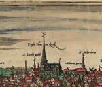 Stadsgezicht van Groningen met ‘Unser Vrouen kerkck’ in Civitates orbis terrarum (1576-1577) van Georg Braun en Frans Hogenberg. Collectie Groninger Archieven (817-1985).