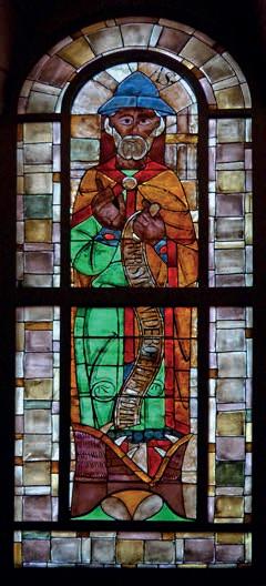 De oudste in situ overgeleverde glas-in-lood-ramen: figuren uit het Oude Testament in de Dom van Augsburg. Vanaf linksboven: Jona, Daniël, Mozes, koning David en Hosea. Foto’s Hans Bernhard / Wikimedia Commons.