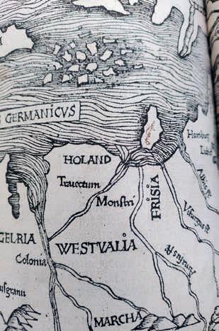 In Verhalen van Frisia leggen we de nadruk op de periode tot 1614, toen in Groningen een academie werd gesticht met de Oost-Fries Ubbo Emmius als eerste rector. Het Friese Franeker had toen al een academie, sinds 1585. Beide universiteiten waren niet het begin, maar eerder het resultaat van het rijke culturele en intellectuele klimaat dat Frisia al zeker sinds de twaalfde eeuw kenmerkte. Hierop wijst ook de dichtheid van dorpen en kerken op wierden en terpen juist in dit gebied, zoals te zien op de kaart van Frisia in Abraham Ortelius’ beroemde wereld-