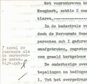 De bewoordingen in de aktes zijn soms dubbelzinnig over wat precies onder roerende goederen wordt verstaan. Alleen het meubilair, zoals banken, preekstoel en orgel? Of ook het avondmaalszilver? In de eerste akte, die van Obergum op 20 maart 1970, staat zelfs nog niet expliciet vermeld dat er ook roerende goederen overgedragen worden. Er is wel een inventarislijst bij de stukken. In de akte van Leegkerk, 15 oktober 1970, wordt in een aantekening verduidelijkt dat het om zowel roerende als onroerende goederen gaat.