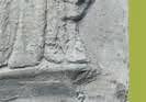 In Groninger gedenkwaardigheden worden geen afbeeldingen op klokken beschreven. Meester Land deed dat wel, maar was in zijn beschrijving niet compleet. Dat weten we omdat gipsafgietsels van de decoraties bewaard zijn gebleven. Hoogstwaarschijnlijk zijn deze vervaardigd door de fl amboyante boerenzoon Pieter Meekhoff Doornbosch (1870-1931) uit Baflo, in zijn omgeving bekend als ‘Pietmeneer’. Gedreven door historische belangstell ing doorkruiste hij in de jaren 1895-1905 de provincie om onder meer klokopschriften te documenteren. Dat deed hij eerst door afwrijfsels te maken met een tinnen lepel op papier, later maakte hij afdrukken met leem. Zijn collectie afgietsels belandde uiteindelijk in het Groninger Museum.10 Ze laten zien dat naast de genoemde apostelen de klok versierd was met beeltenissen van Sint-Pancratius – patroonheilige van de kerk van Garsthuizen – en Maria, de naamgeefster van de klok.11