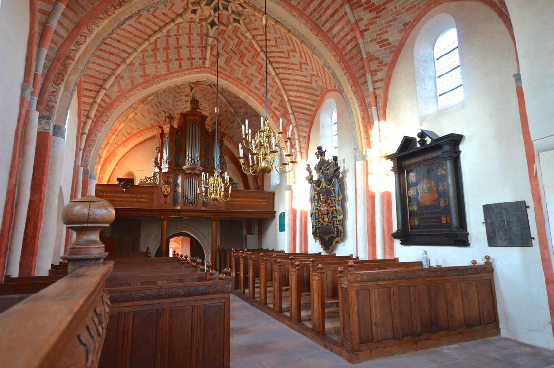 → Gezicht op het koor van de kerk van Uithuizermeeden. Ongeveer drie meter vanaf de koordeur is in 1829 Onno Tamminga Alberda van Rensuma begraven. Foto Duncan Wijting.