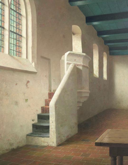 keer in een gesprek met de kunstenaar vooral ook over zijn eigen werk, waarin het kerkinterieur een bijzondere plaats inneemt. Het interview dat Tjitske Zuiderbaan met Eline Brontsema voerde, brengt ons bij een jongere generatie van kunstenaars die ook weer geïntrigeerd worden door de bijzondere sfeer van de eeuwenoude kerkgebouwen. Voor haar prenten heeft zij zich in een uiterst veeleisende druktechniek bekwaamd.