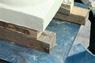 Eind jaren tachtig van de vorige eeuw is de dakruiter vervangen. Daar is toen keurig een waterpas naast gehouden. ‘Op het moment dat we de kerk recht zetten, zou de dakruiter dus scheef komen te staan. We hebben er welgeteld 22 millimeter tussenuit gezaagd om hem dusdanig scheef te zetten dat hij bij het rechtzetten van de kerk juist weer recht zou staan.’ De dakruiter heeft naast de noodzakelijke scheve herplaatsing een restauratiecomponent. Hij was bekleed met kapotte platen van trespa, geperste houtvezels. Op oude foto’s was metselwerk zichtbaar, zodat Jur Bekooy er vanuit ging dat de dakruiter bij wijze van restauratie opnieuw zou moeten worden opgemetseld. ‘Maar toen het trespa was weggehaald, kwam er zink onder vandaan met baksteenimitatie. Toen we dat weghaalden, bleek het origineel hout met baksteenimitatie te zijn. We hebben nu gekozen voor herstel van dat laatste.’