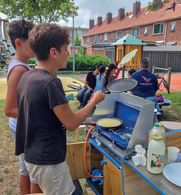 Op het buurtterras vraagt Ismael of hij mag helpen pannenkoekenbakken. “Dat kan ik ook al! Als het bij ons door familiebezoek druk is, help ik ook met koken. Dan maken we zelf Turkse pizza’s en ik kan ook een eitje bakken.” Contact met nieuwe mensen maken, buiten het voetballen om, is soms nog spannend. Zeker na deze zomer, want dan gaat de twaalfjarige Ismael naar de middelbare school. “Dat is in Naaldwijk. Het is een nieuwe omgeving met nieuwe mensen.” De tienjarige Luay kijkt ook al naar de toekomst. “Later wil ik dokter worden. Als ik huisarts ben, kan ik ook andere mensen helpen.”