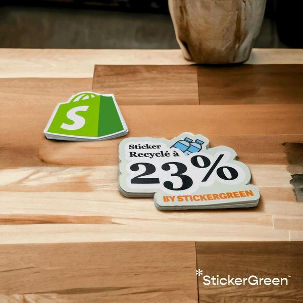 StickerGreen propose des autocollants personnalisés écologiques pour toutes les applications. Des autocollants découpés à la forme aux autocollants transparents, nous offrons des solutions de haute qualité, durables et durables, fabriquées à partir de vinyle recyclé. Parfaits pour les logos, le branding, les projets personnels et une utilisation en extérieur, tout en prenant soin de l'environnement. ��