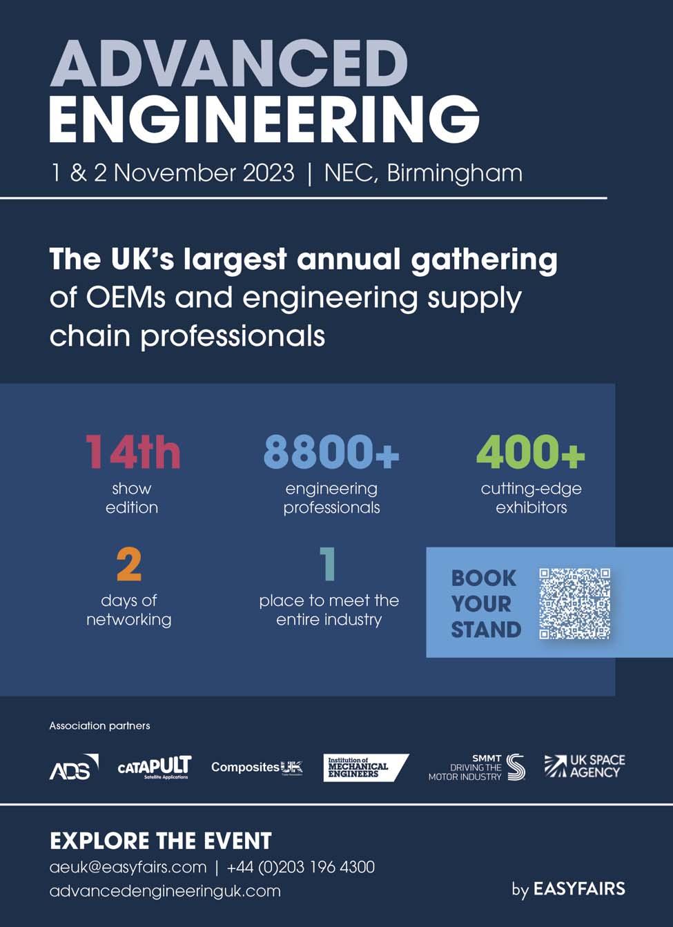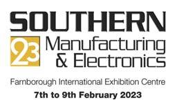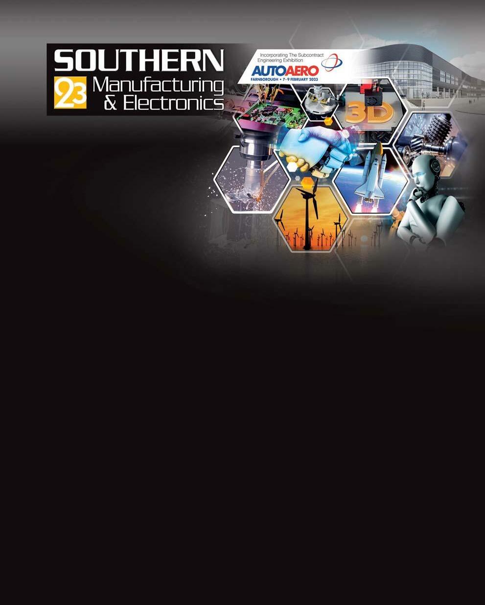 Industry and Innovation converge Over 600 national and international suppliers come together to exhibit at Farnborough International Exhibition and Conference Centre this February for Southern Manufacturing and Electronics (inc AutoAero) 2023. Meet the power behind UK manufacturing industry and see live demonstrations and new product launches of machine tools & tooling, electronics, factory & process automation, packaging & handling, labelling & marking, 3D print technology, test & measurement, materials, composites & adhesives, rapid prototyping, ICT, drives & controls and laboratory equipment. Free industry seminar programme online @ www.industrysouth.co.uk The exhibition is free to attend, free to park and easy to get to. Doors open at 9.30am on Tuesday 7th February. PRE-REGISTER TODAY for your Fast Track Entry Badge, Preview Magazine and Event Catalogue at www.industrysouth.co.uk SOUTHERN MANUFACTURING & ELECTRONICS is an ETES event organised by European Trade & Exhibition Services Ltd Tel 01784 880890 · email philv@etes.co.uk