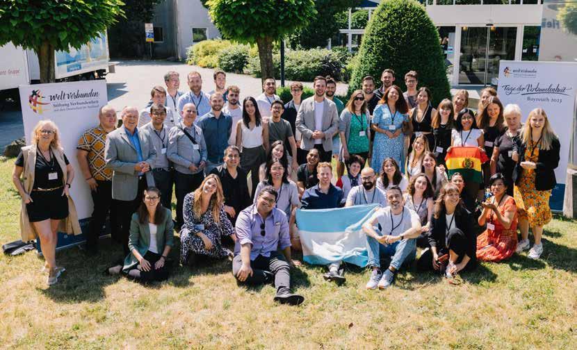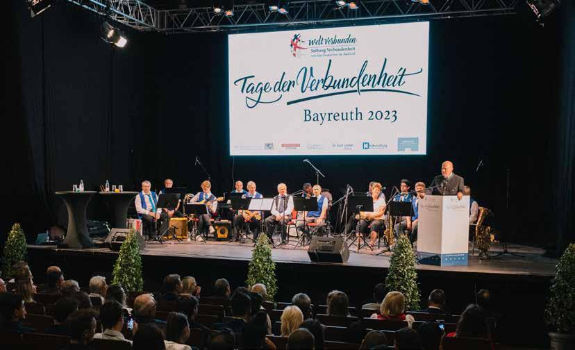 Auch sind im Berichtsjahr neue Veranstaltungsformate und Kooperationspartnerschaften entstanden. Erstmalig haben wir die „Tage der Verbundenheit“ in Bayreuth durchgeführt. Eine Woche lang fanden Veranstaltungen, Ausstellungen und Seminare mit Gästen aus den Reihen der deutschsprachigen Gemeinschaften und deutschen Minderheiten aus Mittel- und Osteuropa, den GUS-Staaten, Lateinamerika und den USA, aber auch mit Persönlichkeiten aus Politik, Wissenschaft, Wirtschaft und Kultur statt. Insbesondere die Teilnahme und die entstandenen Kooperationsprojekte mit der deutschsprachigen Gemeinschaft in den USA stellen eine geographische Expansion der Stiftungsarbeit dar. Neue Gesprächsformate wie das „Nikolaigespräch“, aber auch das bewährte OnlineFormat „Deutsche Minderheiten stellen sich vor“, verdeutlichen den bildungspolitischen Anspruch unserer Arbeit. Mit der neuen Schriftenreihe „Weltverbunden“ haben wir 2023 des Weiteren unsere Publikationstätigkeit intensiviert.