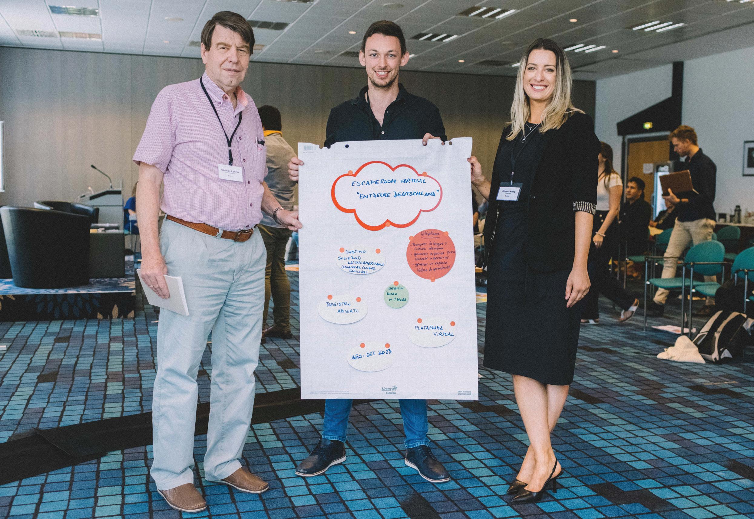 Nach einem dynamischen Einstieg zum Kennenlernen erarbeiteten die Kongressteilnehmer/-innen gemeinsam Projekte. Bei diesen innerhalb der Initiative #JungesNetzwerk umgesetzten Aktivitäten handelt es sich um lokale Projekte, die die bilateralen Beziehungen aus der Mitte der Zivilgesellschaft stärken. Thematisch bewegen sich die Projekte vom Bereich Kultur und Sprache über Bildung und Technologie bis hin zu Soziales und Nachhaltigkeit. Eingeteilt in Themenbereiche, die zu den Profilen der jeweiligen Gruppenmitglieder passen, kam es zu interessanten Ergebnissen, die kurz darauf präsentiert wurden. Unter den Projekten befinden sich etwa ein Sprachprojekt in Form eines digitalen Escape-Rooms, eine Diversitäts-Agenda für die deutschen