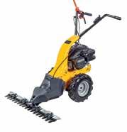 Oikea työvälinen pitkän ja tiheän nurmen leikkaamiseen. 123 cc nelitahtimoottori. Työleveys 87 cm. Säädettävä leikkuukorkeus. Kaksi vetopyörää takana.