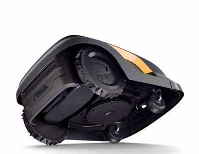 Tutti i robot con piattaforma grande sono dotati di motore brushless, larghezza di taglio di 26 cm e regolazione elettronica dell’altezza da 20 a 65 mm. Le 6 lame pivotanti, che ruotano a 2400 giri/min, garantiscono un taglio preciso e ordinato, anche su pendenze fino al 50%. Gestiscono 30 zone e 150 “no-go zones”, e sono progettati con una maggiore altezza da terra per affrontare terreni irregolari.