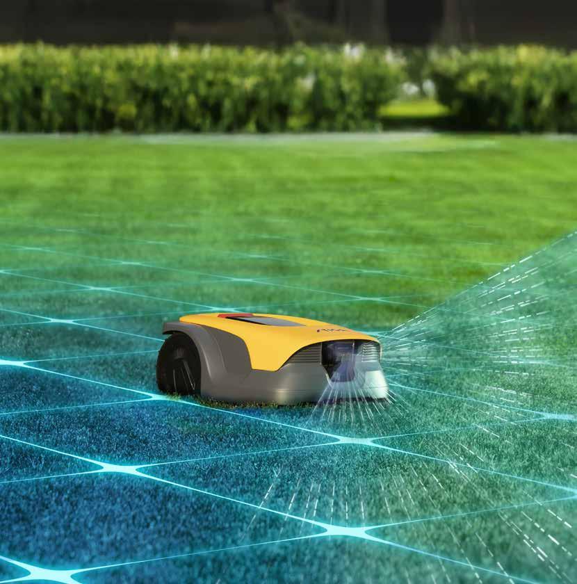 La telecamera con intelligenza artificiale integrata distingue automaticamente il prato dagli altri elementi, permettendo al robot di rilevare gli ostacoli e muoversi nel giardino in modo sicuro.