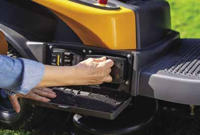 La posizione anteriore del piatto di taglio garantisce un’accessibilità e una precisione eccezionali, assicurando che nessuna area del tuo giardino resti non tagliata.