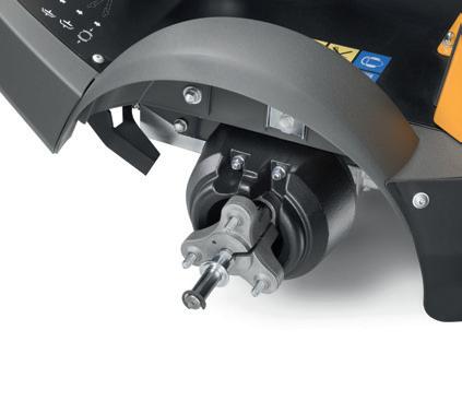 Die Riemen bestehen aus Verbundwerkstoff und sind daher besonders widerstandsfähig. Sowohl die Riemen als auch die Reibscheiben sind geschützt, damit kein Wasser eindringen kann.