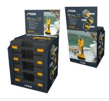 Lesélémentsd’habillage(fondeffetbois+casquettenoire aveclogoSTIGABlanc),réf.MM0010102/ST1SHELFSET125