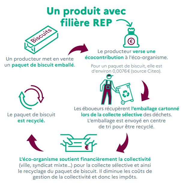 Cette loi, basée sur le principe du « pollueur-payeur», prévoit que les entreprises responsables de la mise sur le marché français de certaines catégories de produits soient responsables de l’ensembleducyclede viede cesproduits, depuis leur conception jusqu’à leur fin de vie : fabrication, distribution, utilisation, mais aussi recyclage en fin de vie.