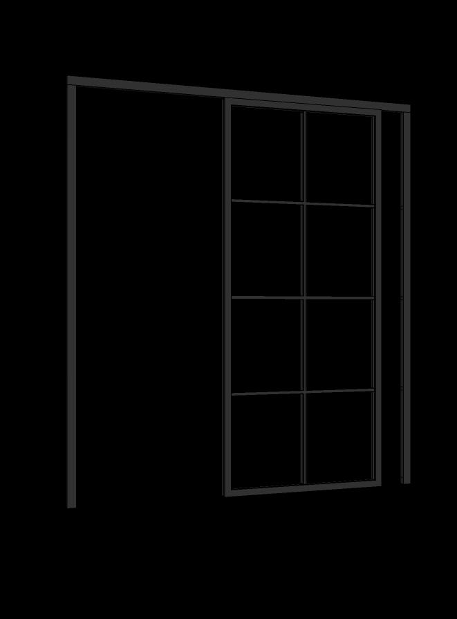 Skyvedøren kombinerer effektivt form og funksjon . Den er designet for å både forbinde rom og skape privatliv . Døren går inn i et hulrom i veggen når den er åpen Ideell for mindre rom eller når døren ofte skal være åpen . Den monteres i veggen med vår skreddersydde pocket skinne .