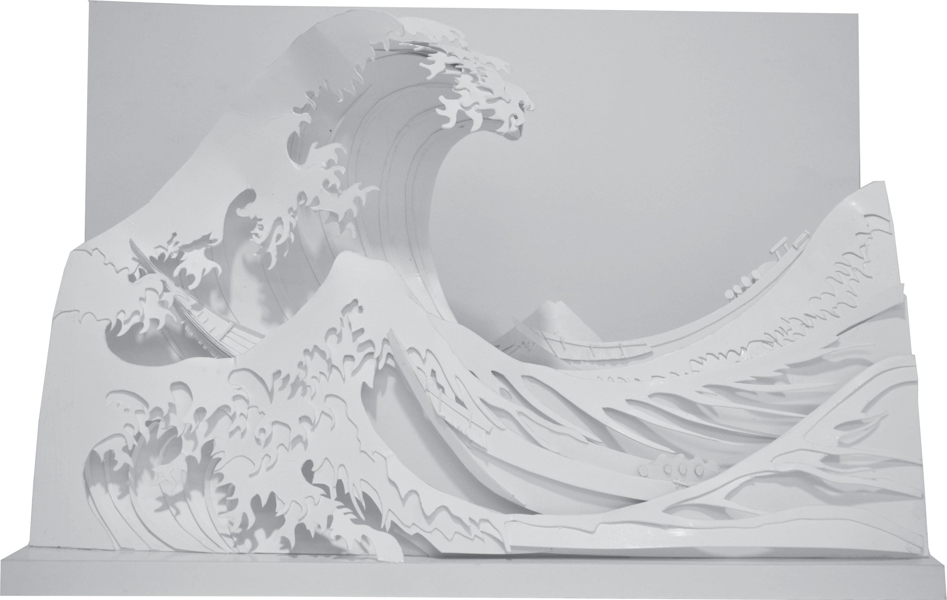 keuzeopdracht: Ruimtelijke voorstelling in kleur van Hokusai’s meesterwerk van de Japanse woodblock print, of het topwerk van Japanse traditionele architectuur, nl.