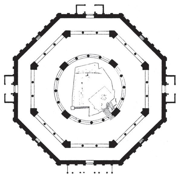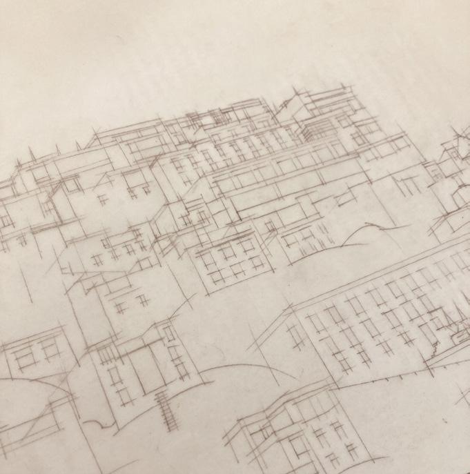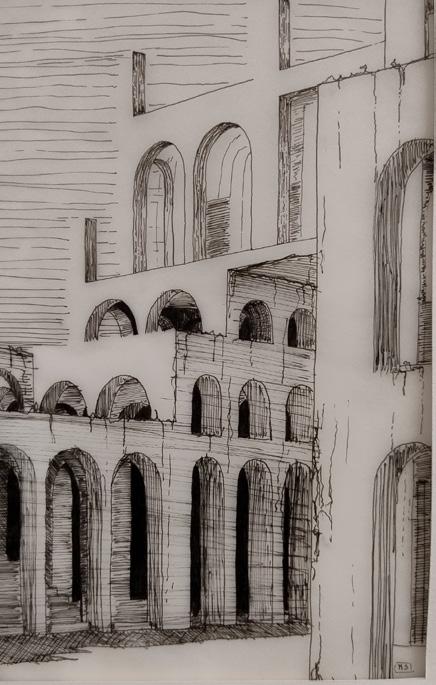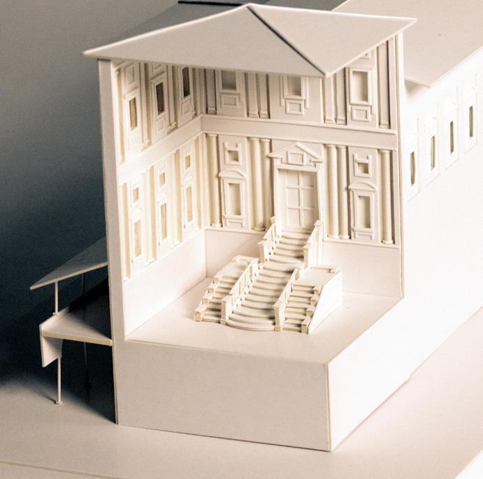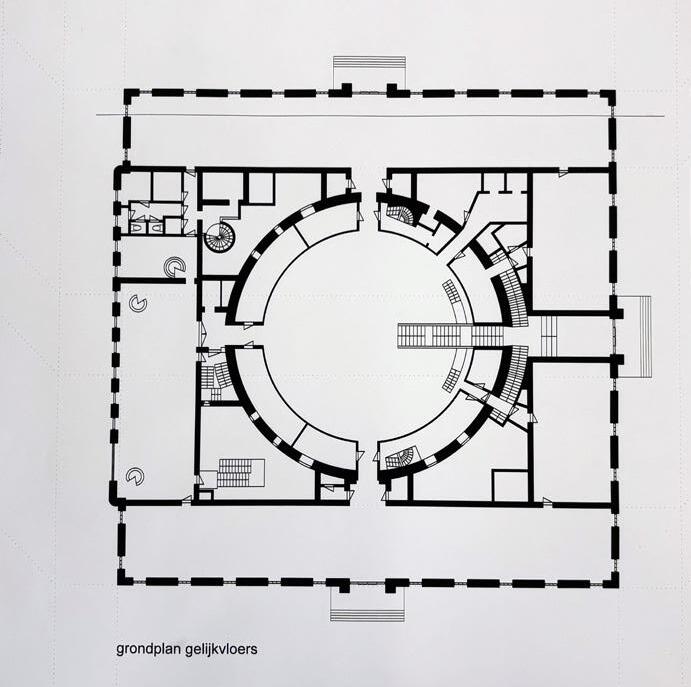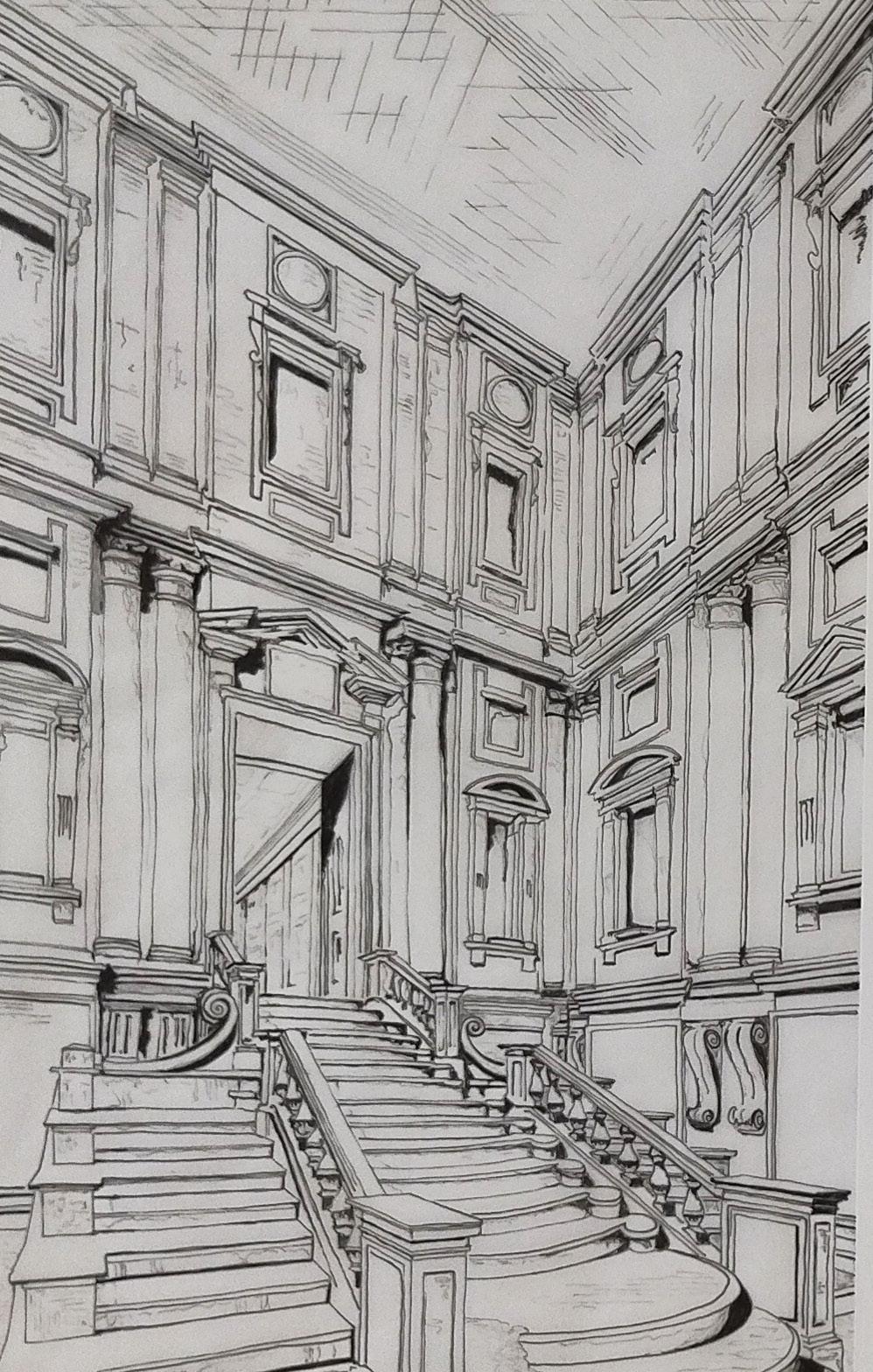 De focus ligt op een leesbare abstractie van de aanwezige volumes en ornamentiek.