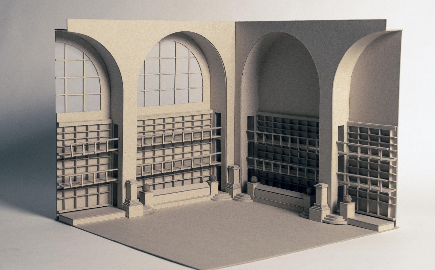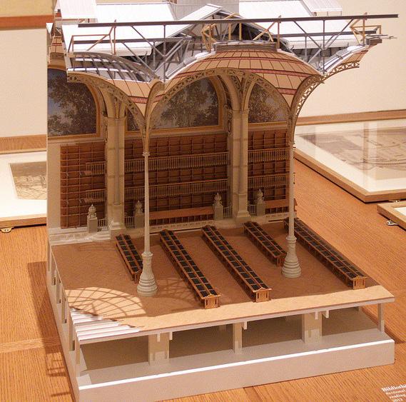 Het schaalmodel vormt samen met de 3 overige onderdelen een totaalbeeld van de Salle Labrouste van de Bibliothèque Nationale de France.