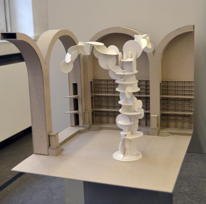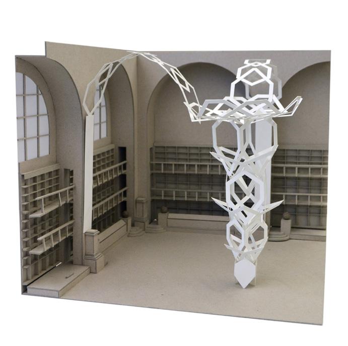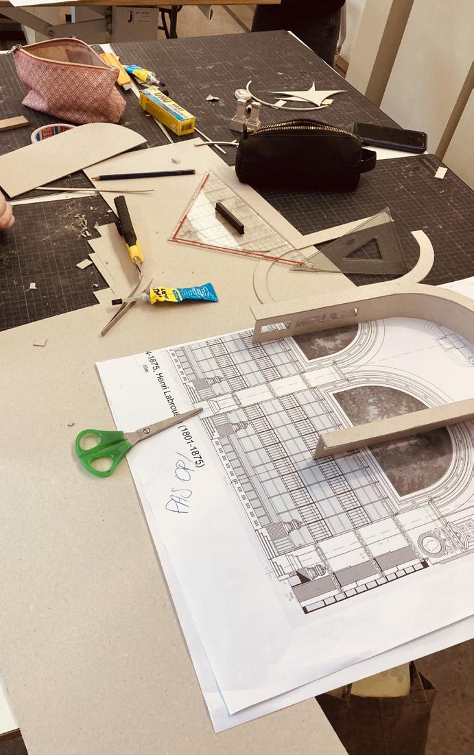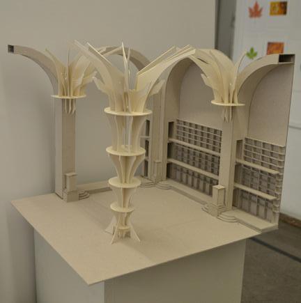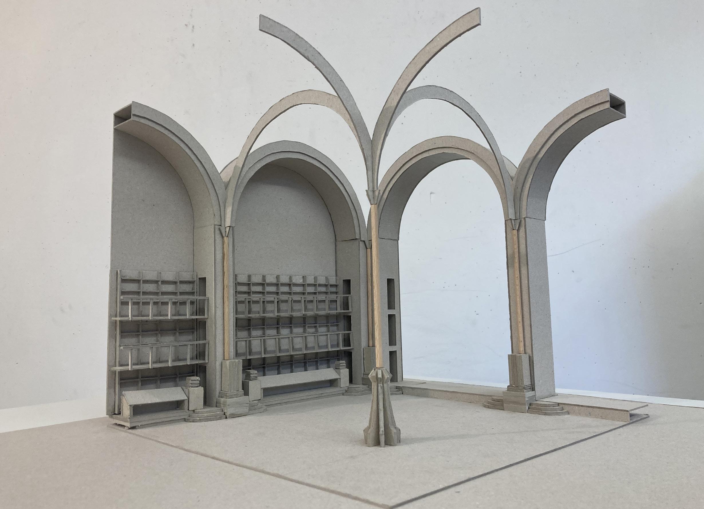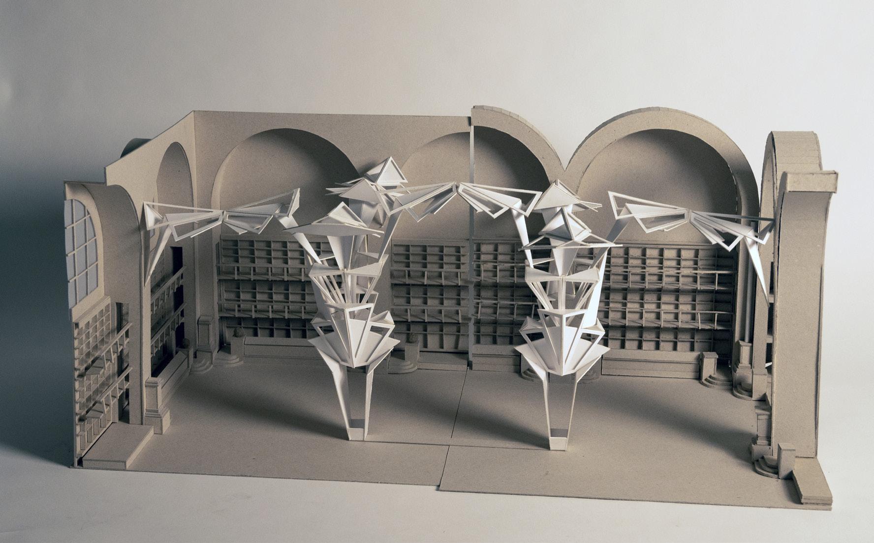 We werken een schaalmodel uit van een quadrant (1/4) van de ‘Salle Labrouste’ in de Bibliothèque Nationale op schaal 1/50.