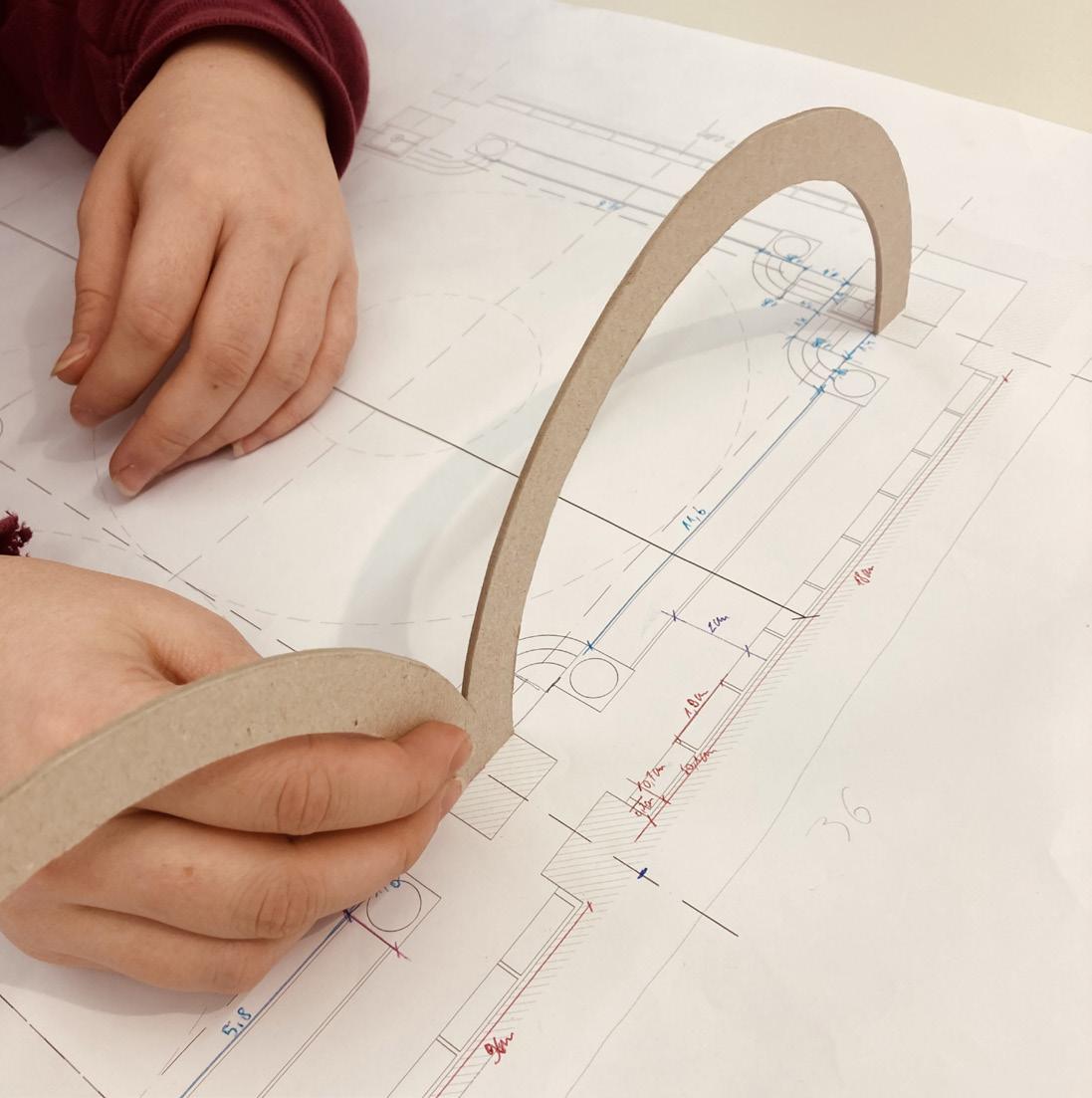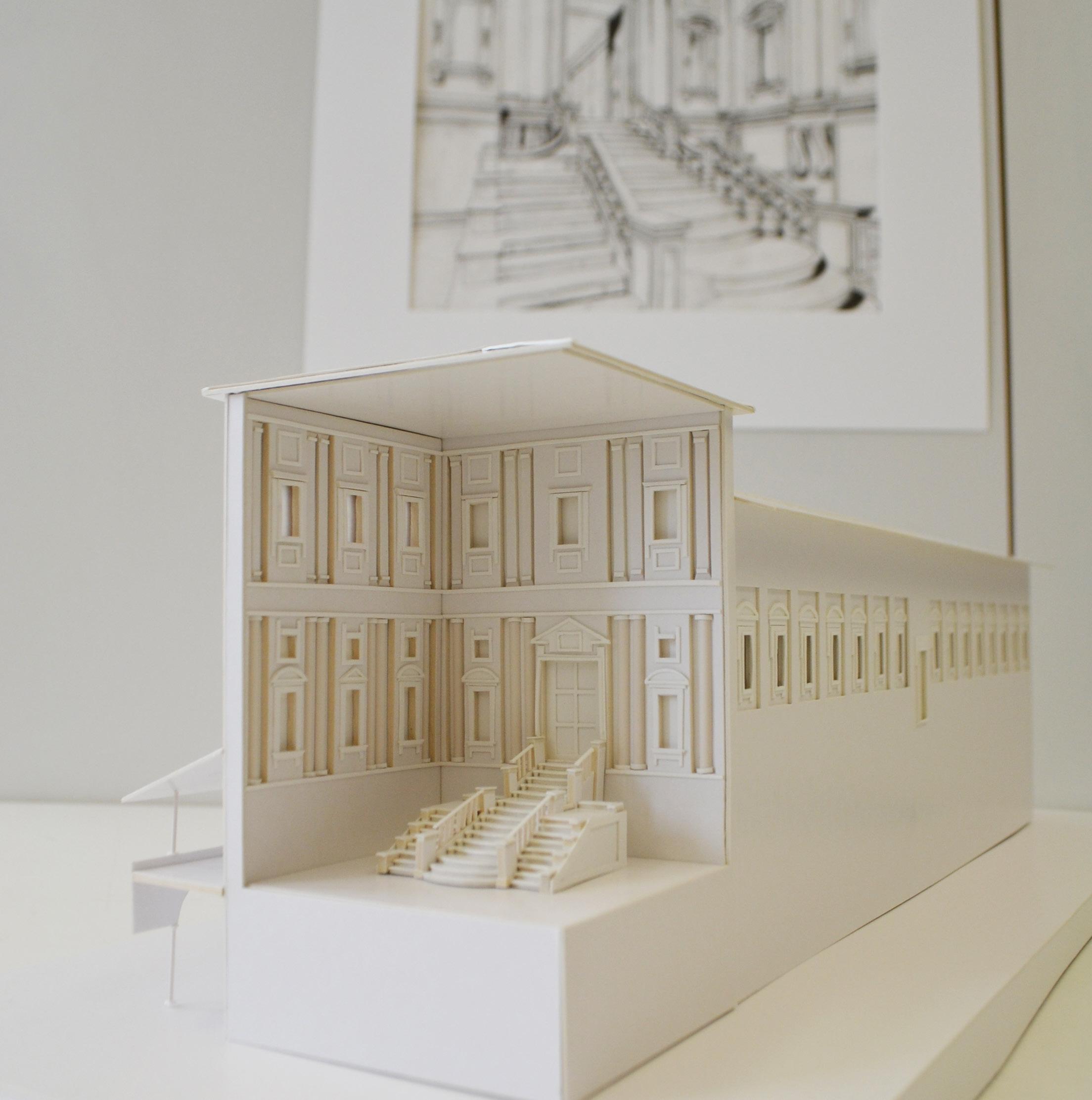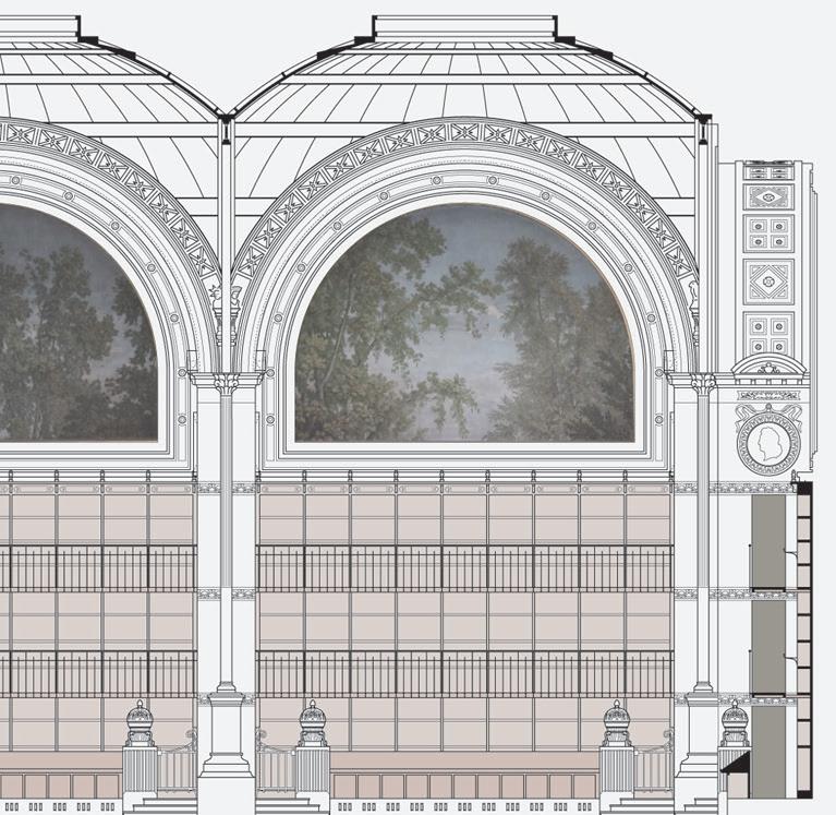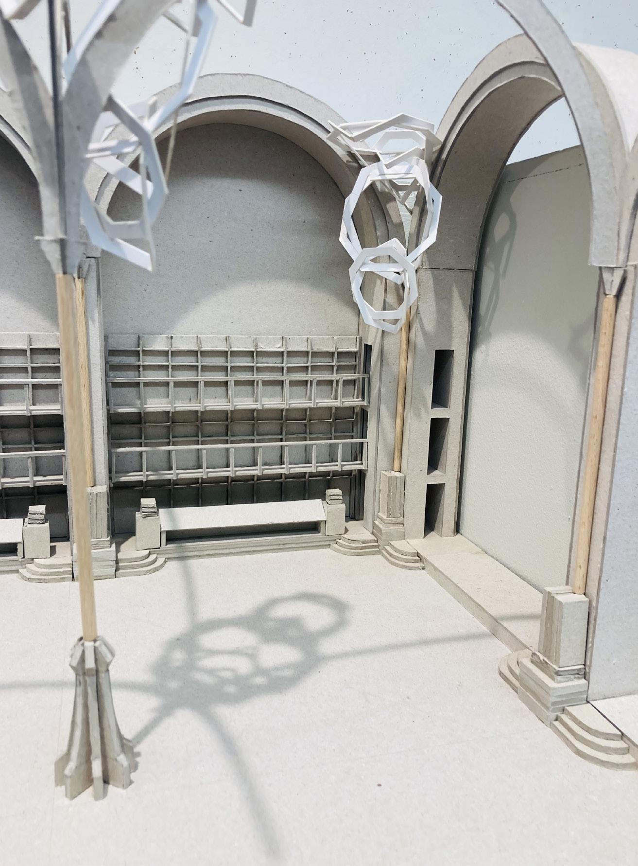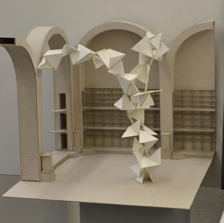 We werken een schaalmodel uit van een quadrant (1/4) van de ‘Salle Labrouste’ in de Bibliothèque Nationale op schaal 1/50.