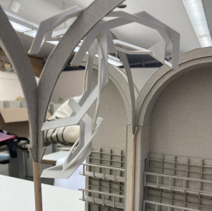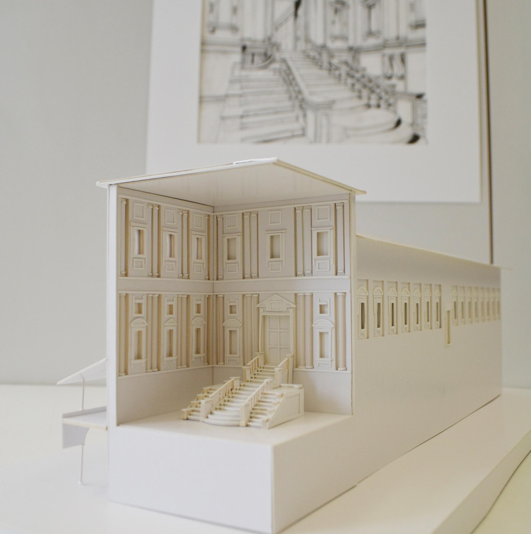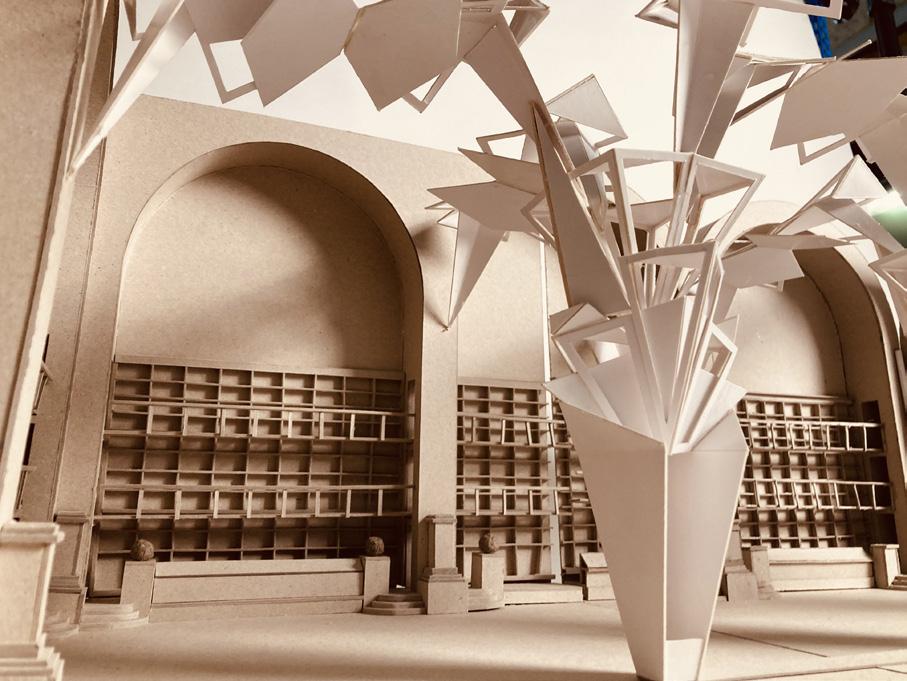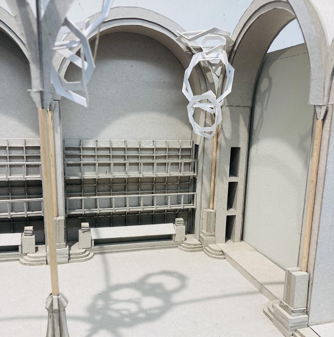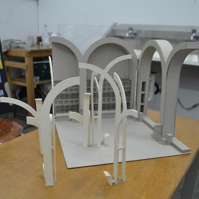 We werken een schaalmodel uit van een quadrant (1/4) van de ‘Salle Labrouste’ in de Bibliothèque Nationale op schaal 1/50.
