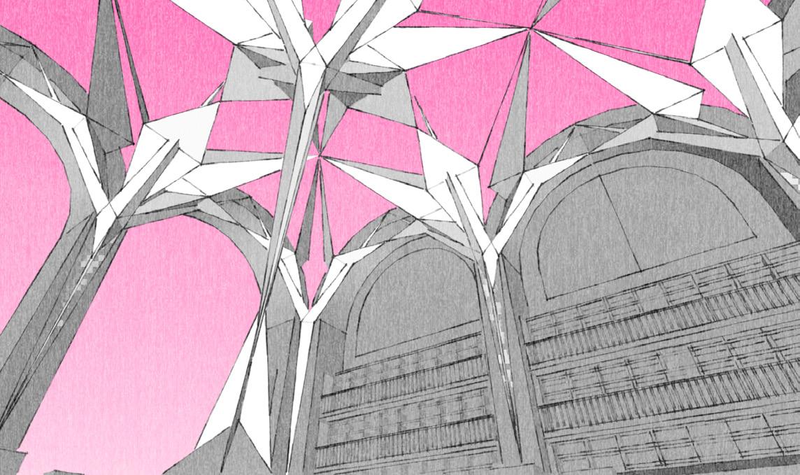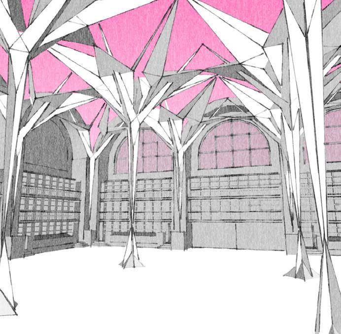 We maken een ruimtelijk onderzoek van de structuur van de Bibliothèque Nationale, en ontwikkelen op basis van een (an) organische vormentaal een alternatieve overkapping voor de leeszaal.