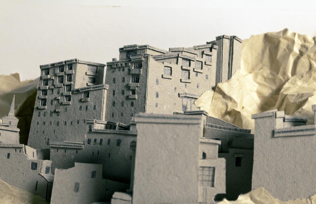 Deze vormstudie neemt ons mee naar Azië, meer bepaald aan de voet van de Himalaya in India. Het imposante zeventiendeeeuwse Leh Palace (Lehen Palkhar) van negen verdiepingen doemt hoog op de heuvel op boven de tempels, moskeeën en huizen van de stad Leh. Dit massieve stenen paleis bekroont de vernaculaire architectuur uit het dal en gaat naadloos op in het omgevende berglandschap. De poëtische integratie van dit paleis, gebouwd door koning Sengge Namgyal (1590-1640), respecteert de geest van de plaats.