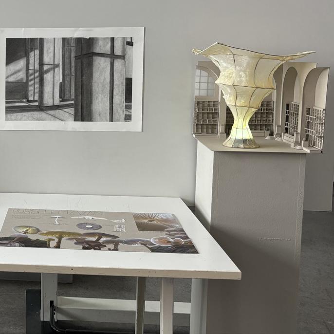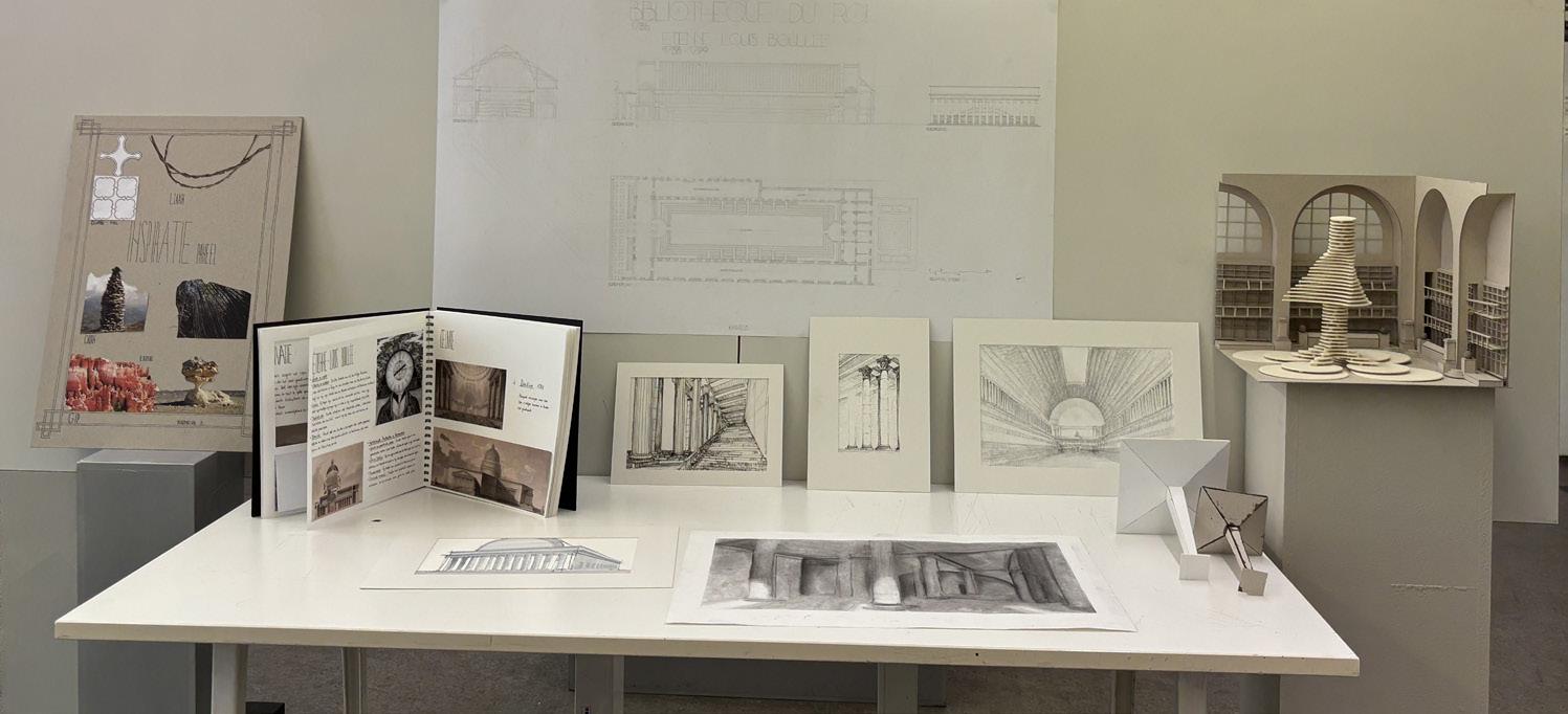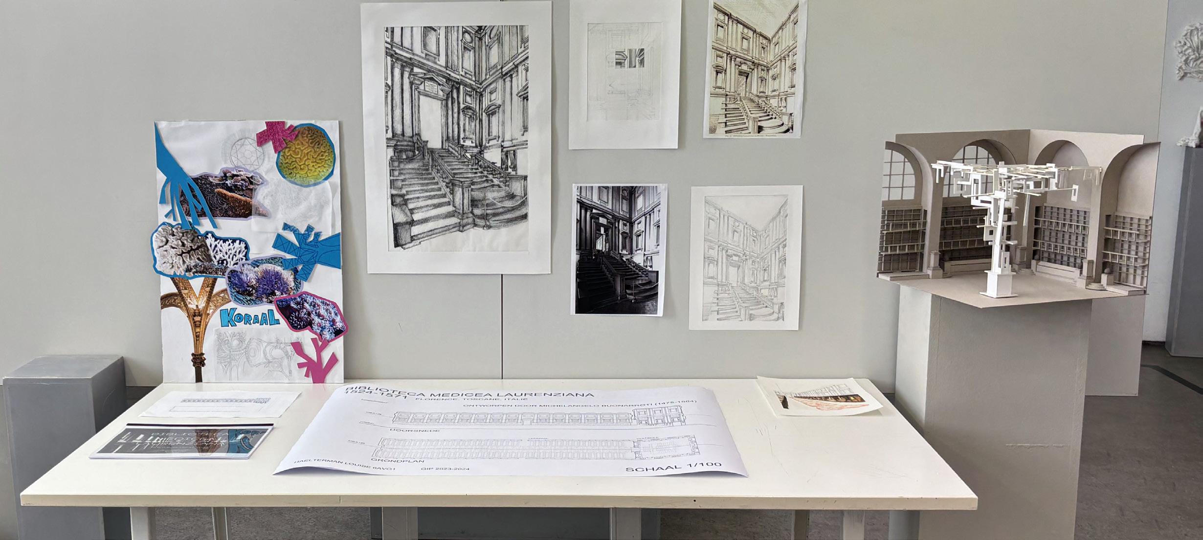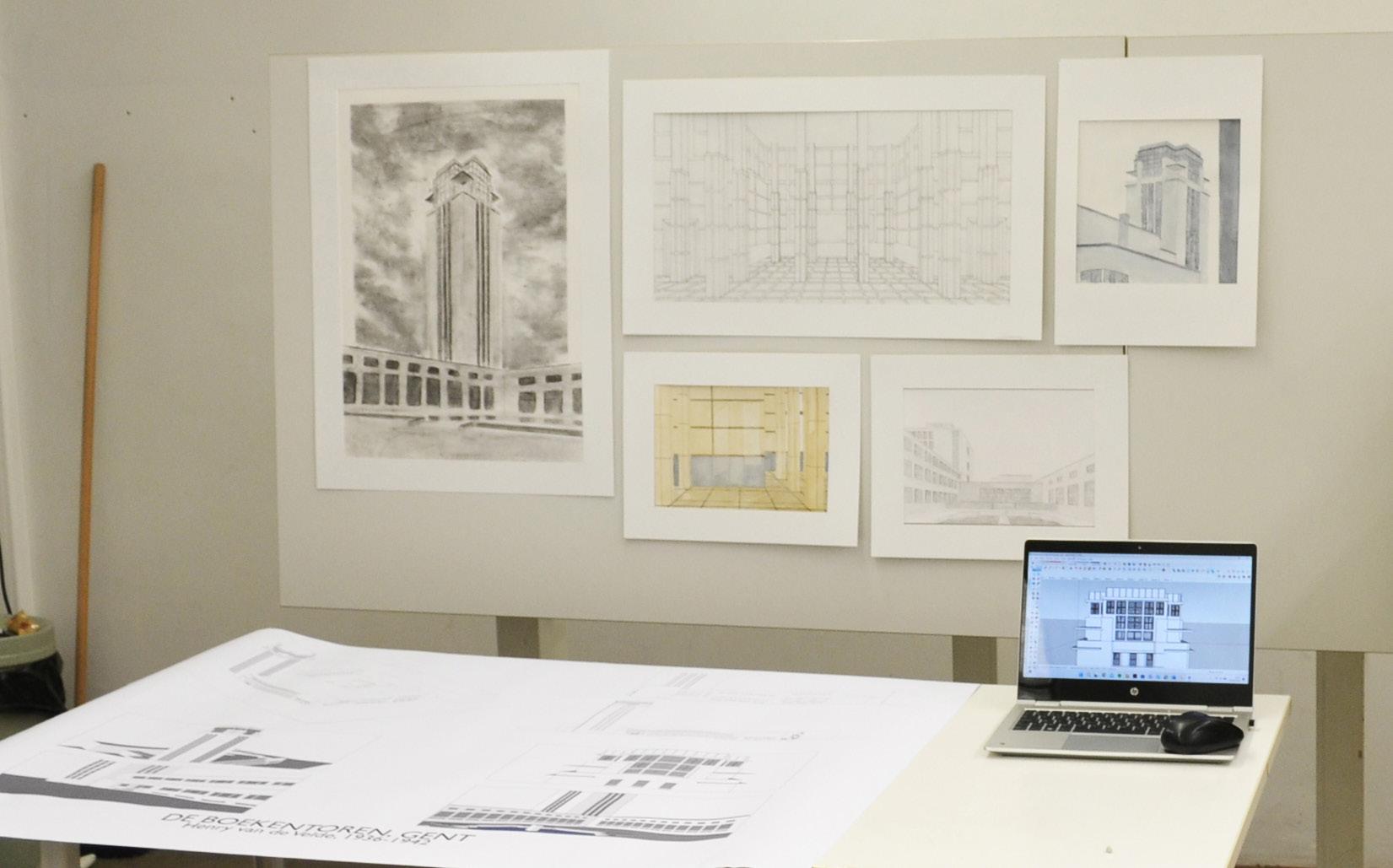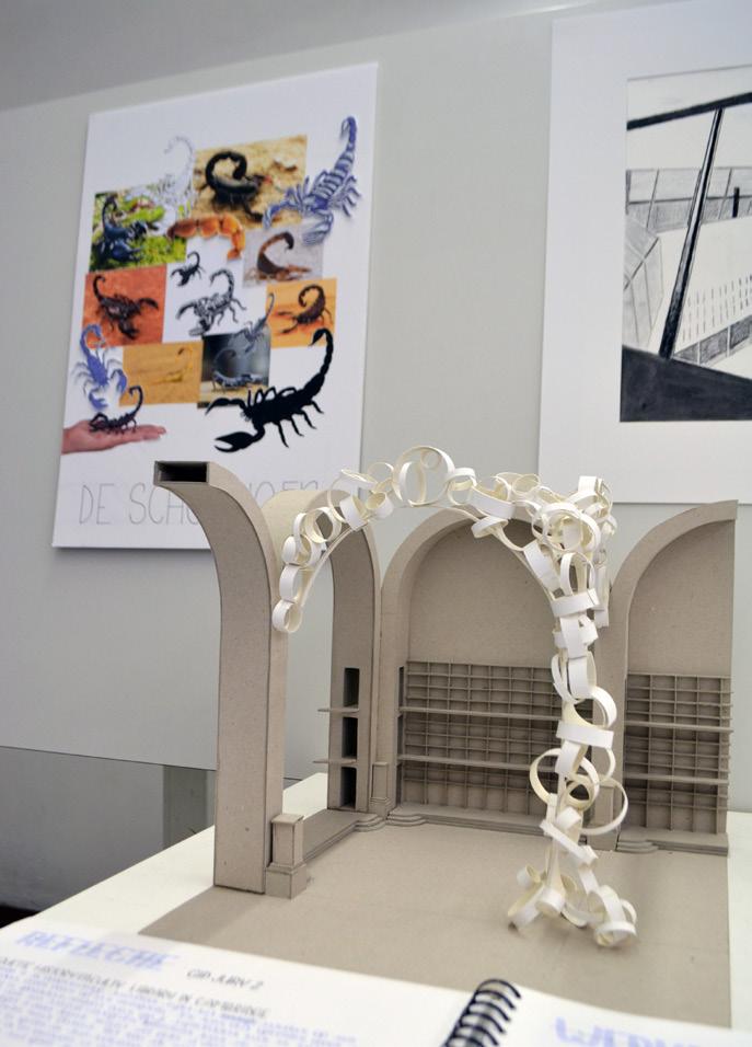 Daarnaast wordt het onderzoek van één van de volgende visionaire bibliotheken (1 t.e.m. 11) geëvoceerd in ruimtelijk en grafisch werk.