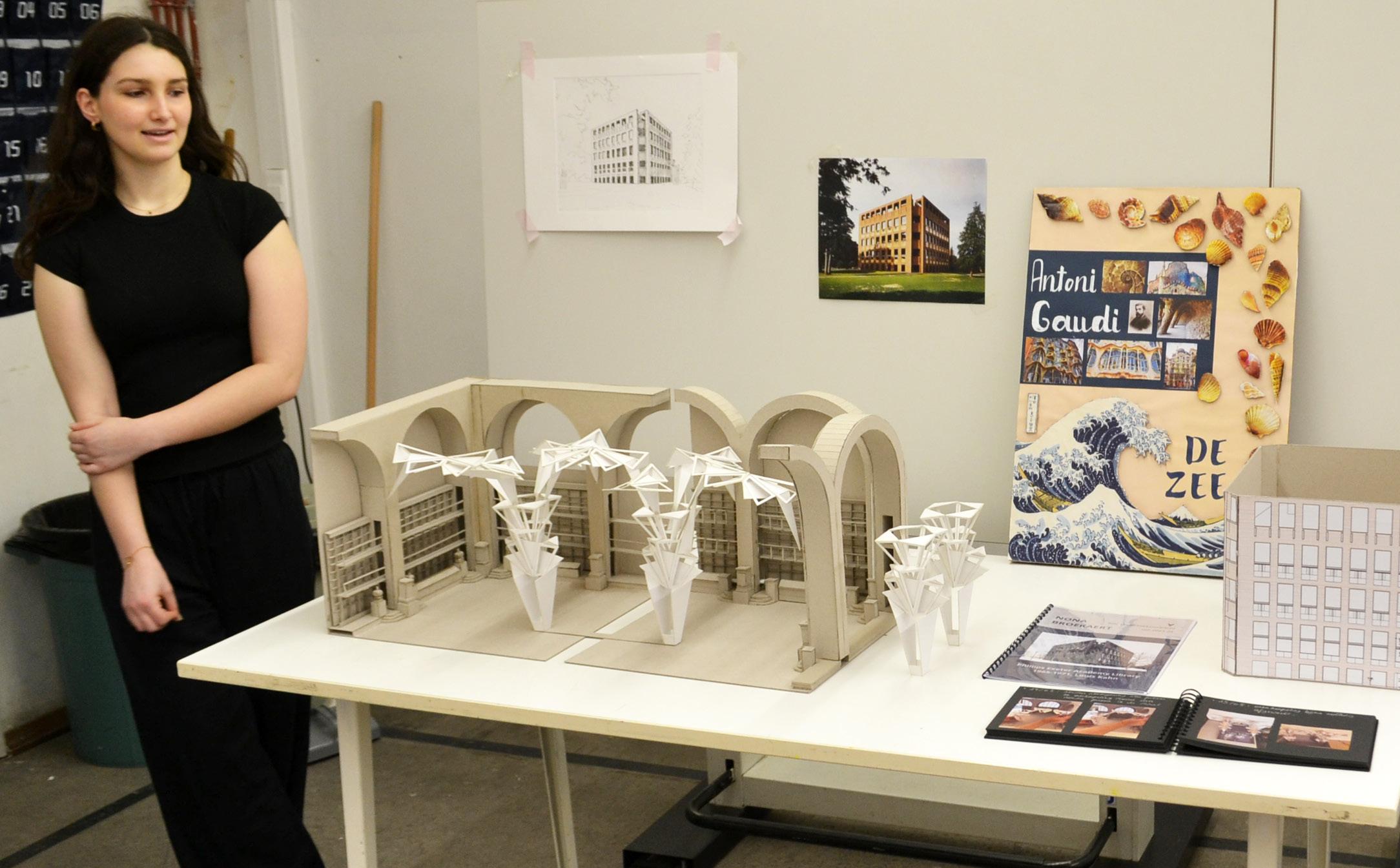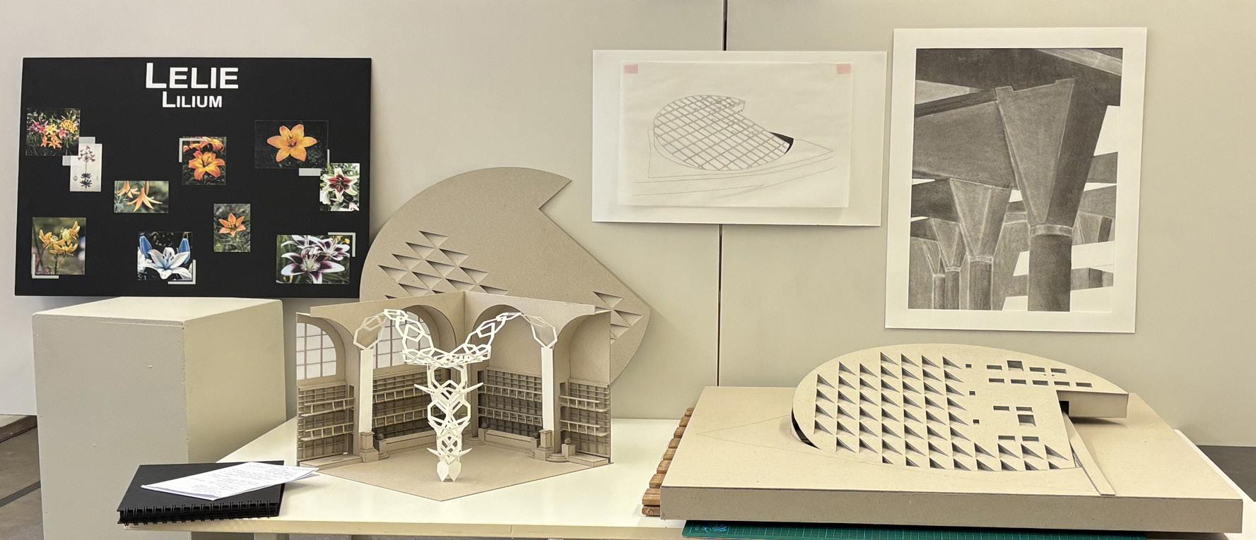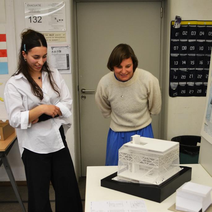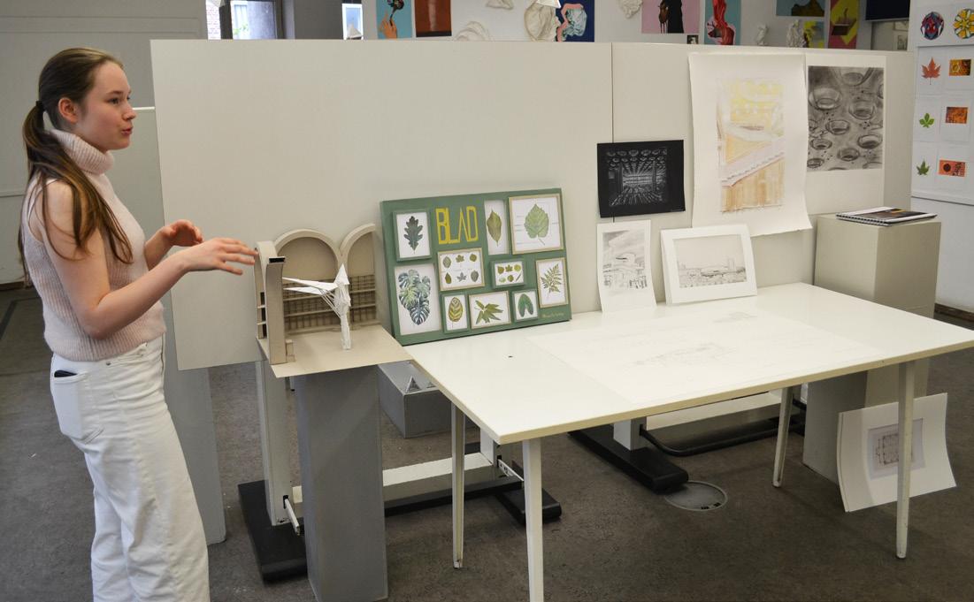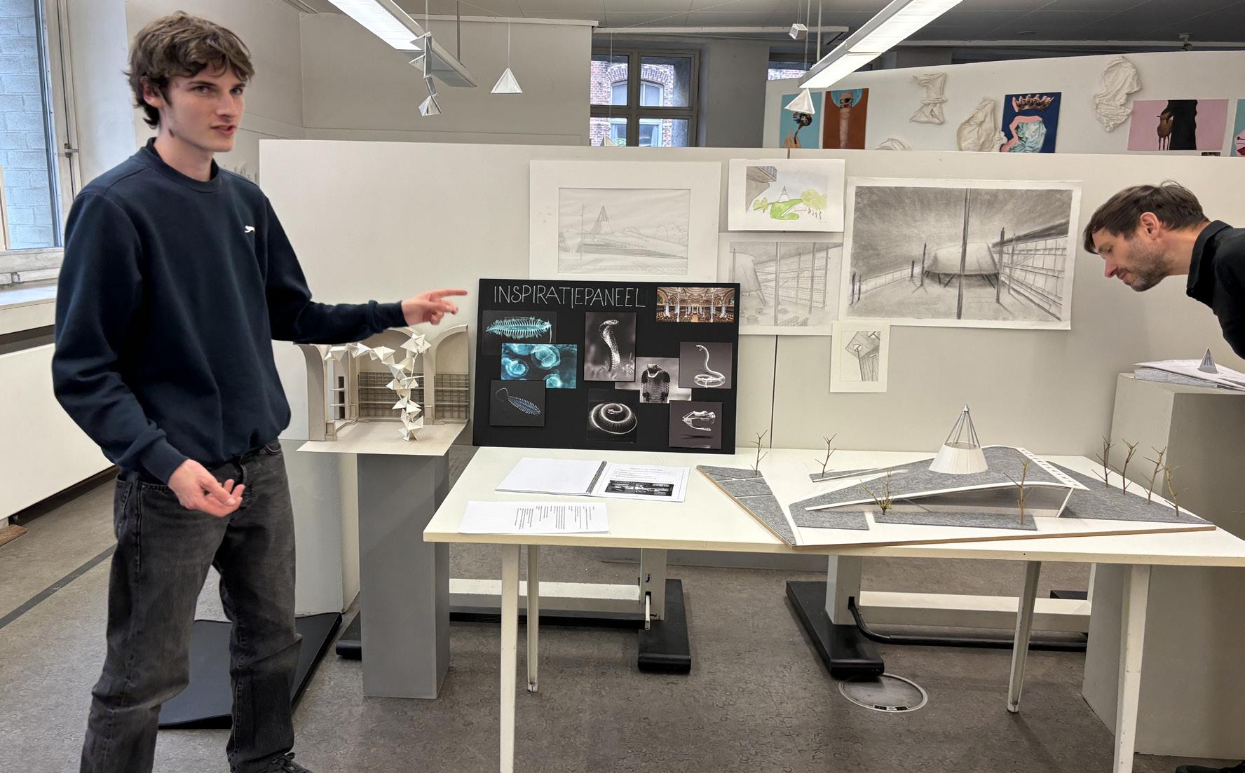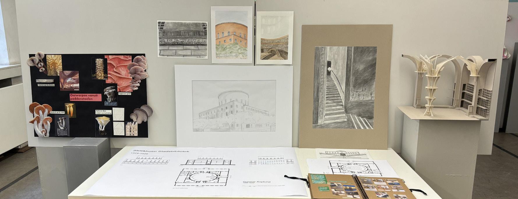 De opdracht koppelt binnen meerdere vakken (RVG/ ART/KIN) een breed spectrum aan onderdelen van de architecturale vorming, zowel ruimtelijk (volume, materiaal en textuur) als grafisch (voorstelling in plan, foto en tekening).