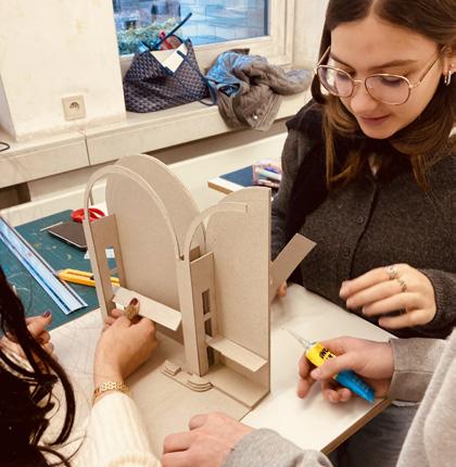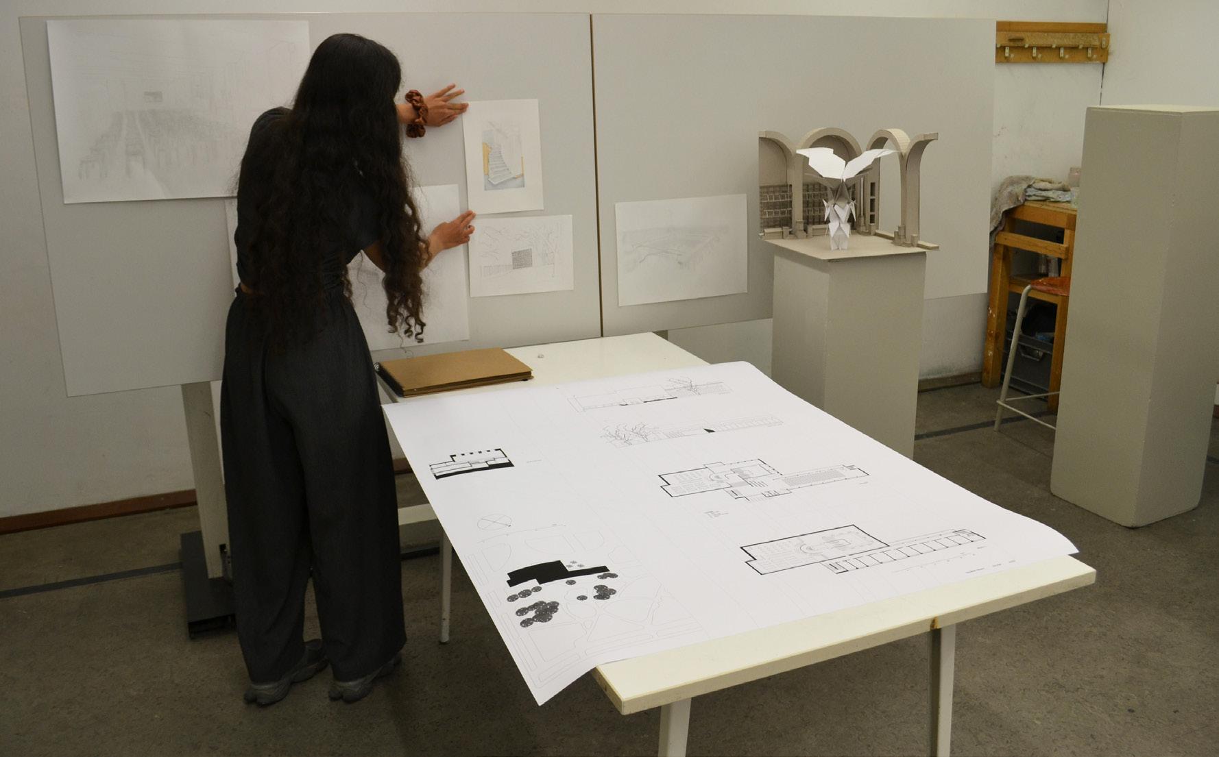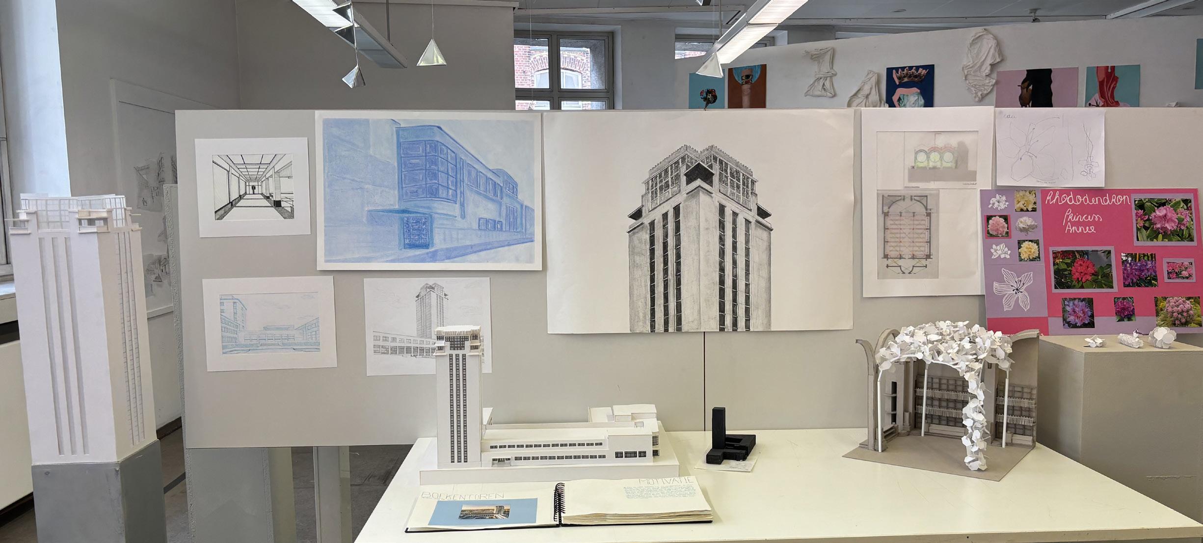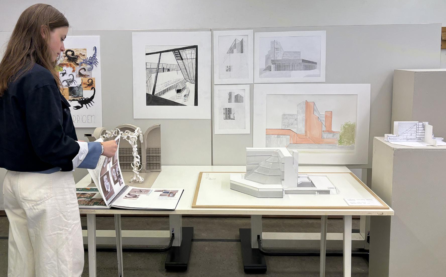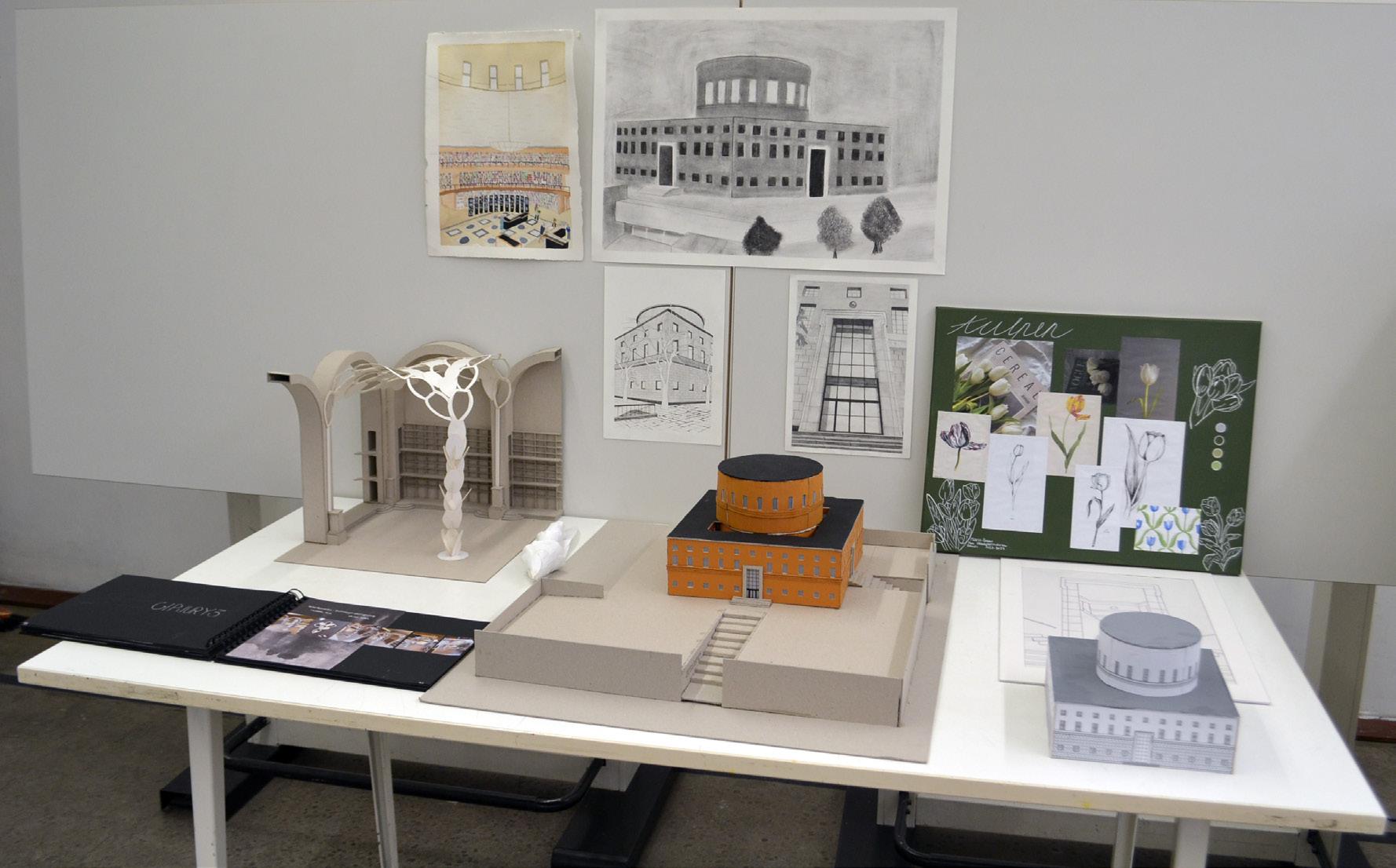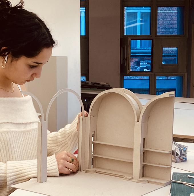 De opdracht koppelt binnen meerdere vakken (RVG/ ART/KIN) een breed spectrum aan onderdelen van de architecturale vorming, zowel ruimtelijk (volume, materiaal en textuur) als grafisch (voorstelling in plan, foto en tekening).