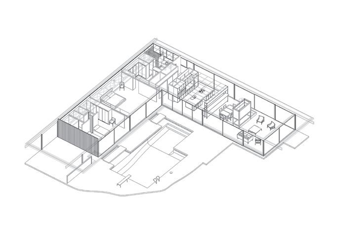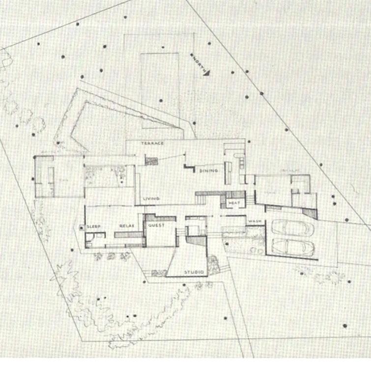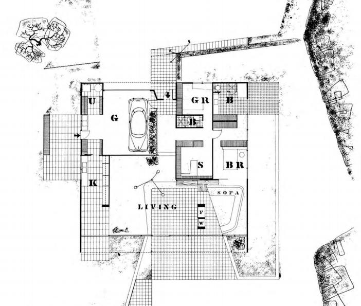 De constructie v komt tot stan vierkante staalconstructie. Dit was oo een van de eerste Case Study Houses die hier gebruik v Het gebruik v mogelijk om een gr creëren in het interieur eigenaar van h Architecture Magazin weinig privéruimtes en v imposante ruimtes voor entertainment. Dit is ook duidelijk te zien door de zeer grote living met aanliggende slaapkamer Tussen living en slaapkamer is opmerkelijk weinig afscheiding.