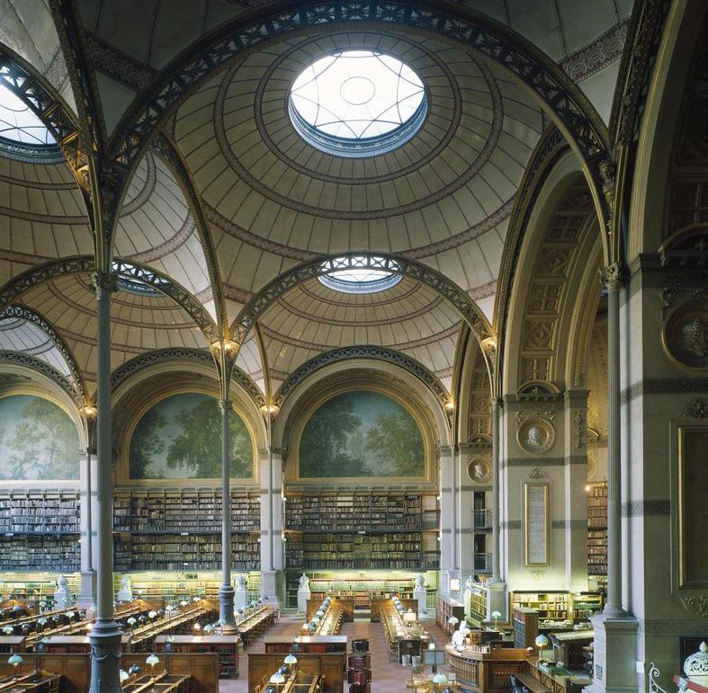 De Bibliothèque Nationale die Henri Labrouste tussen 1854 en 1875 integreerde in het Palais Mazarin te Parijs staat op een belangrijk kruispunt in de architectuurgeschiedenis. Door zijn toepassing van gietijzer en glasmaterialen van de industriële revolutie - en zijn omgang met licht en ruimte legde hij de basis voor de Art Nouveau.
