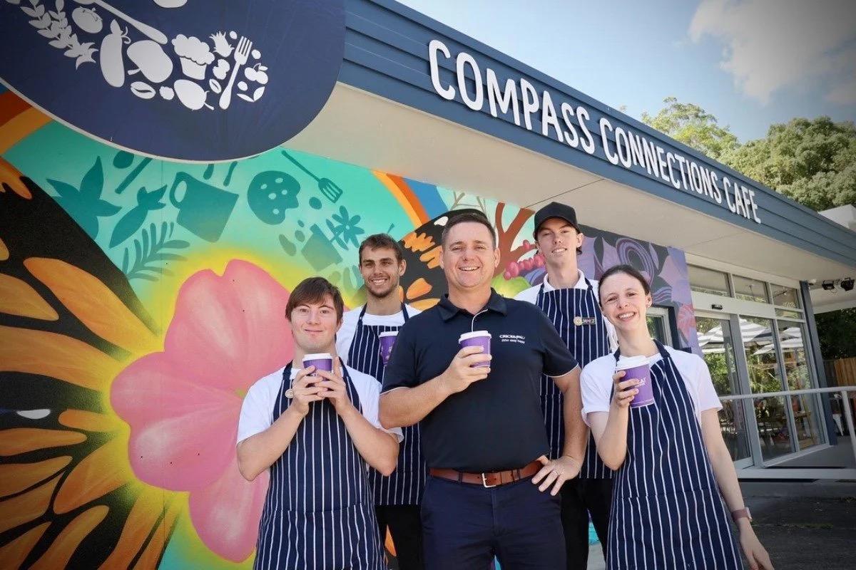 Today, 100+ staff support over 180 Trainees (people with disabilities) via 6 Campuses and a range of Compass-built social enterprises, from Caboolture through to Gympie. Compass’s social enterprises include a fully functional farm, multiple cafes, a retail outlet, a commercial kitchen, an Assistance Dog program and much more – all offering life-changing opportunities for young people with disabilities.