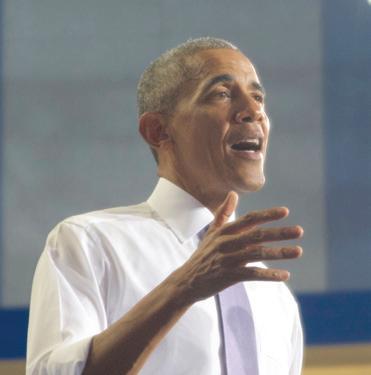 President Barack Obama visits the campus and leads a rally of thousands of attendees.