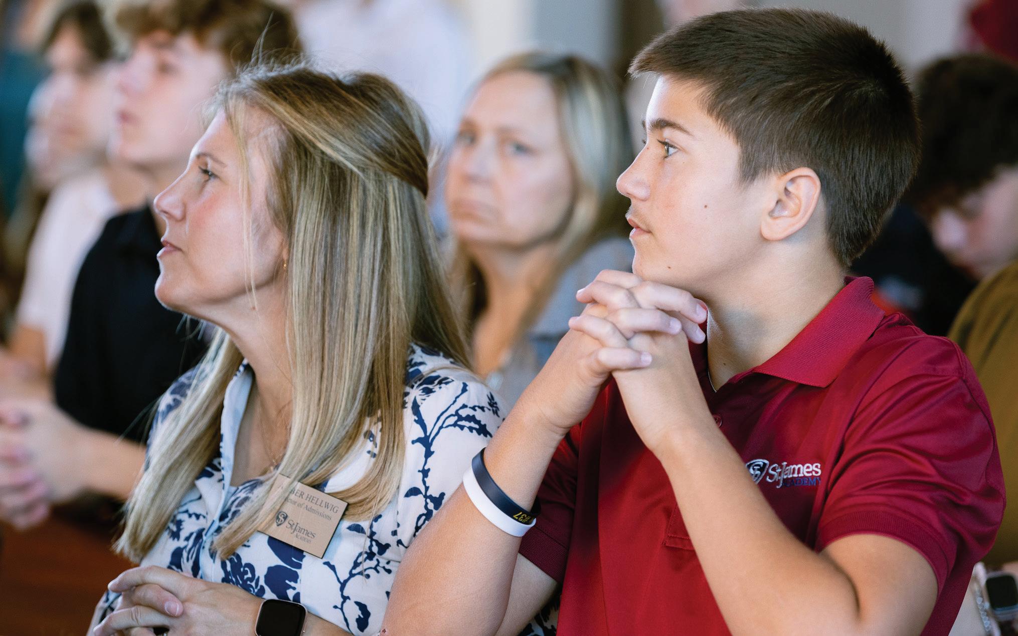 St. James Academy exists to pass on the Catholic faith to the next generation. The community is rooted in the One, Holy, Catholic and Apostolic Church and is dedicated to developing the minds and hearts of young people to know Truth, choose Good and live virtuously in the service of others.