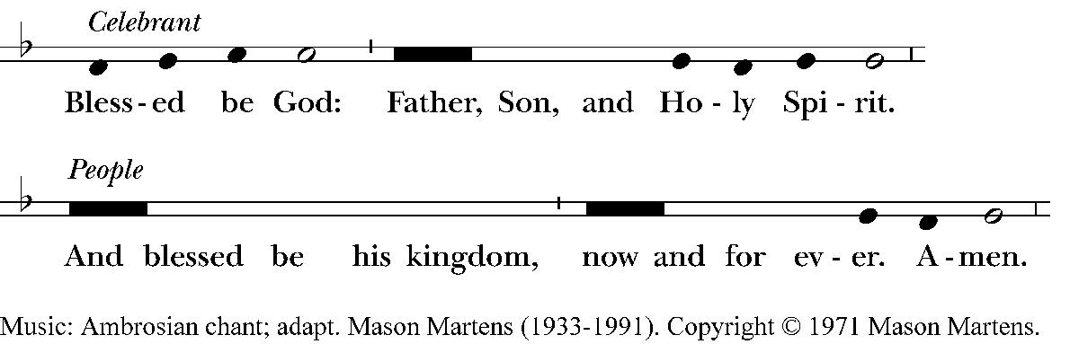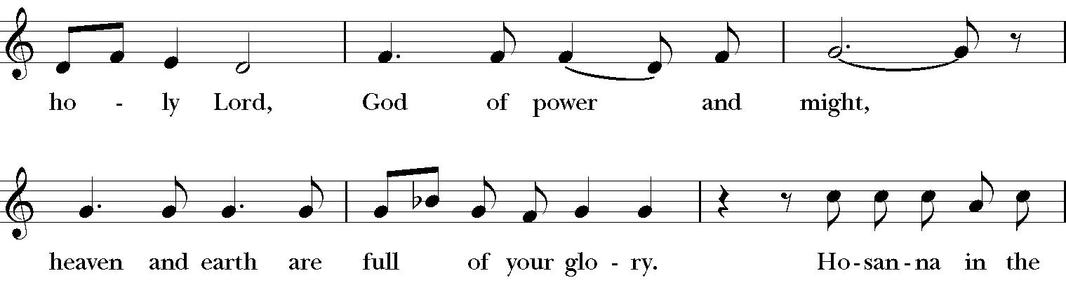 Therefore we praise you, joining our voices with Angels and Archangels and with all the company of heaven, who for ever sing this hymn to proclaim the glory of your Name: