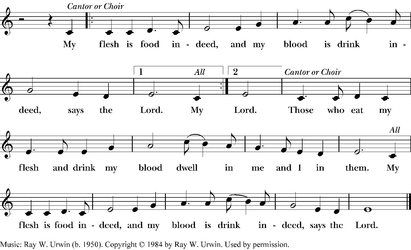 Remembering now his work of redemption and offering to you this sacrifice of thanksgiving, We celebrate Christ’s death and resurrection as we await the day of his coming.