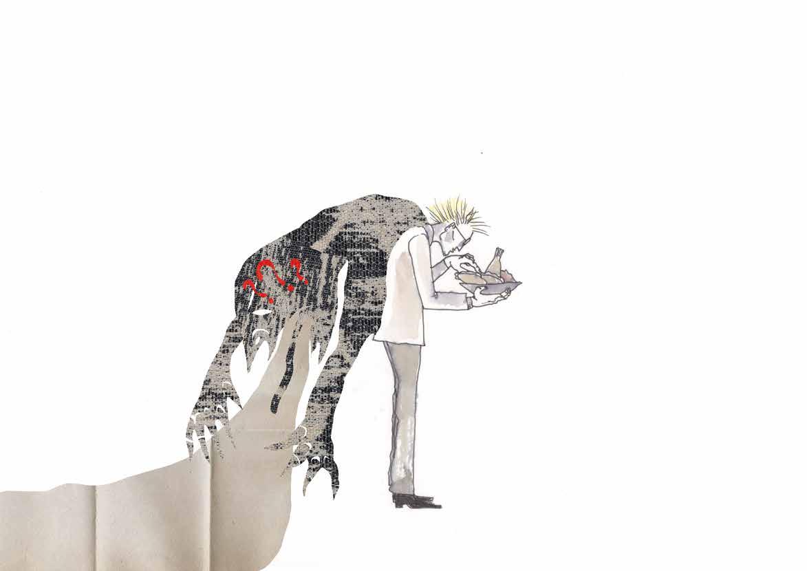voedsel en stuitte onmiddellijk op problemen. De onalledaagse smaak en structuur wekten afkeer in hem op. Het was bovendien veel te scherp gekruid.