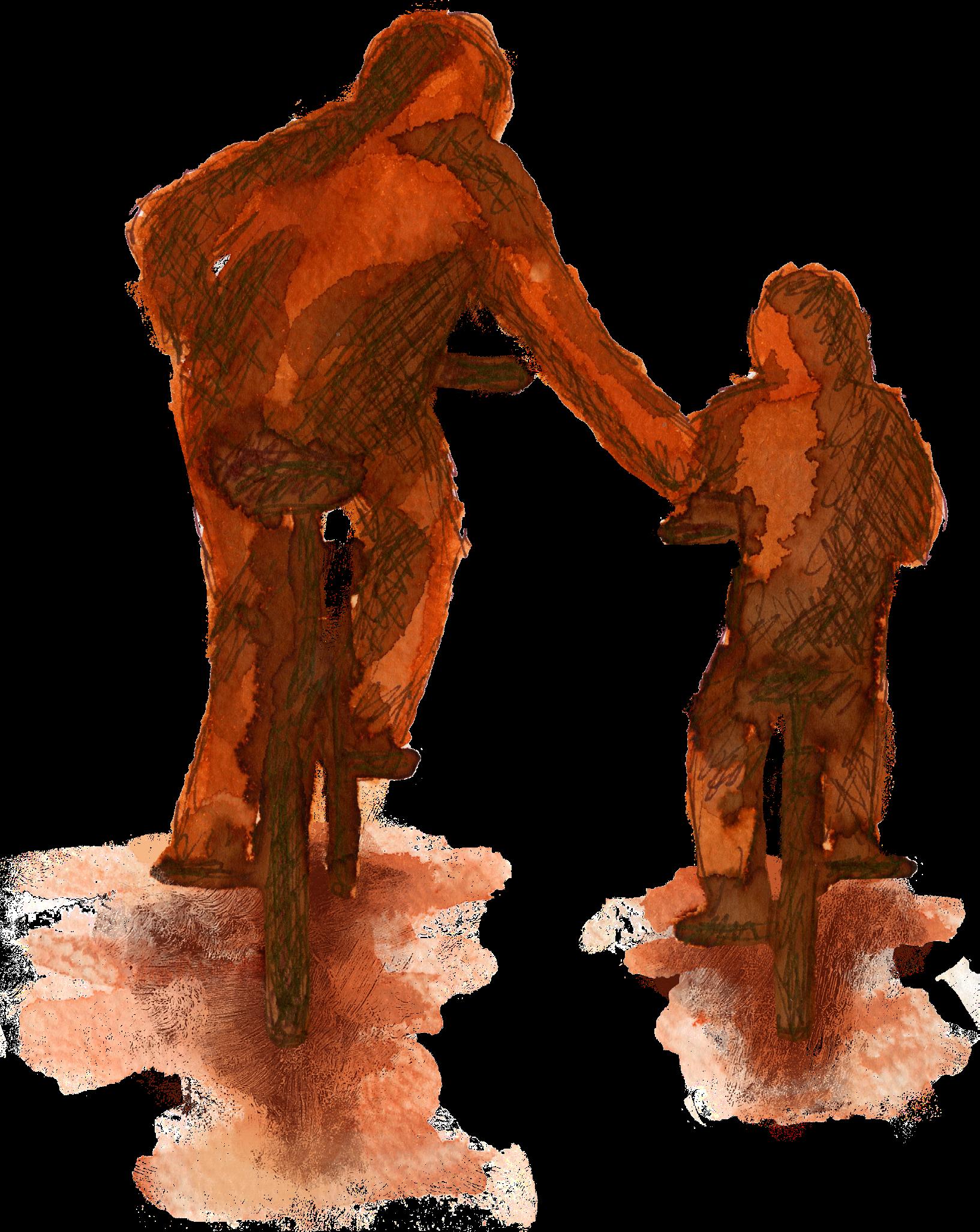 Dat mijn vader in het begin een kasplantje was en alles opnieuw moest leren, heb ik denk ik geblokkeerd in mijn herinneringen. Als ik er zo over nadenk, lijkt het een verhaal van iemand anders. Ik weet niet of hij mij en de rest van het gezin herkende; hij kraamde vaak onzin uit en tekende gekke mannen met punthoeden.