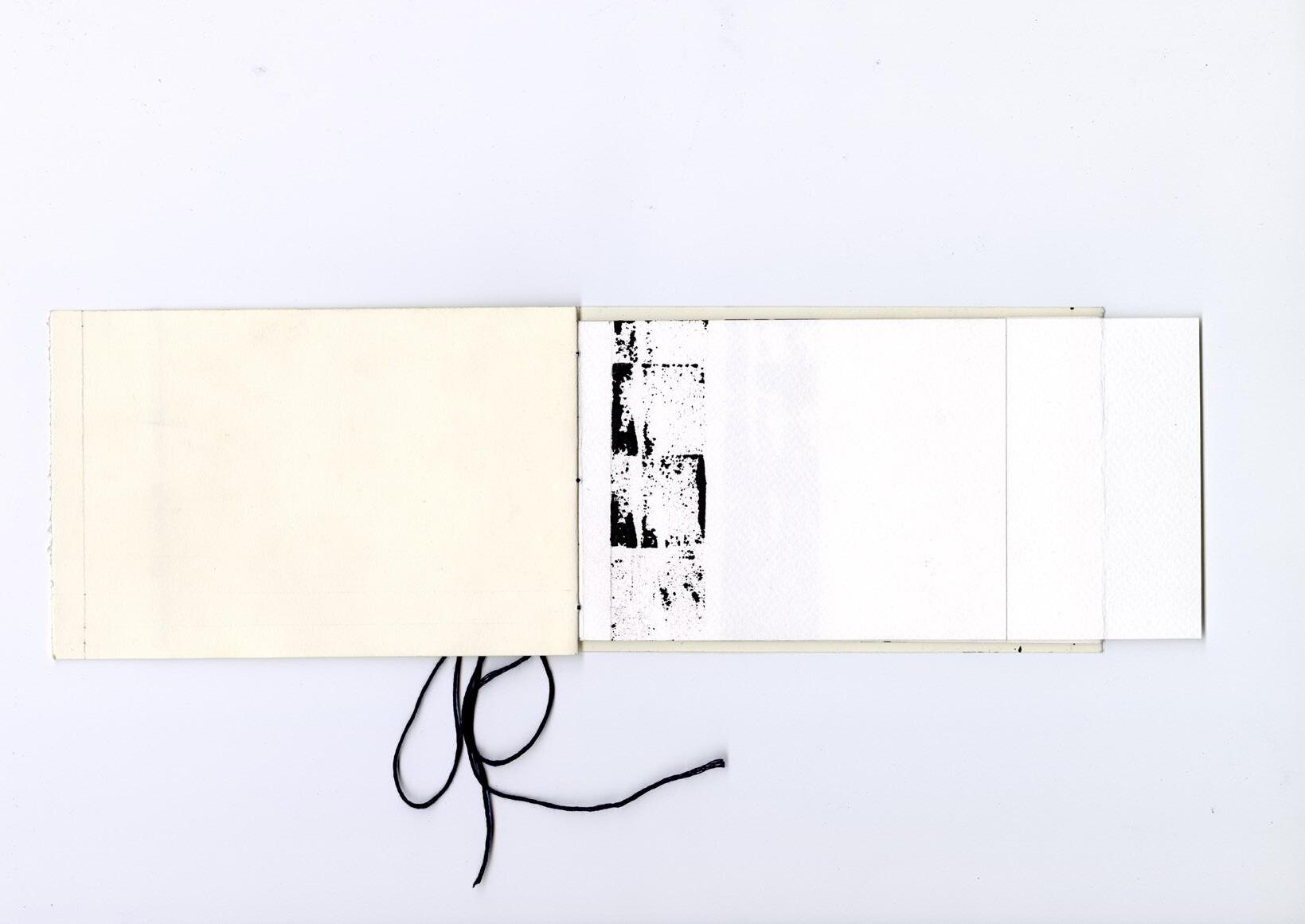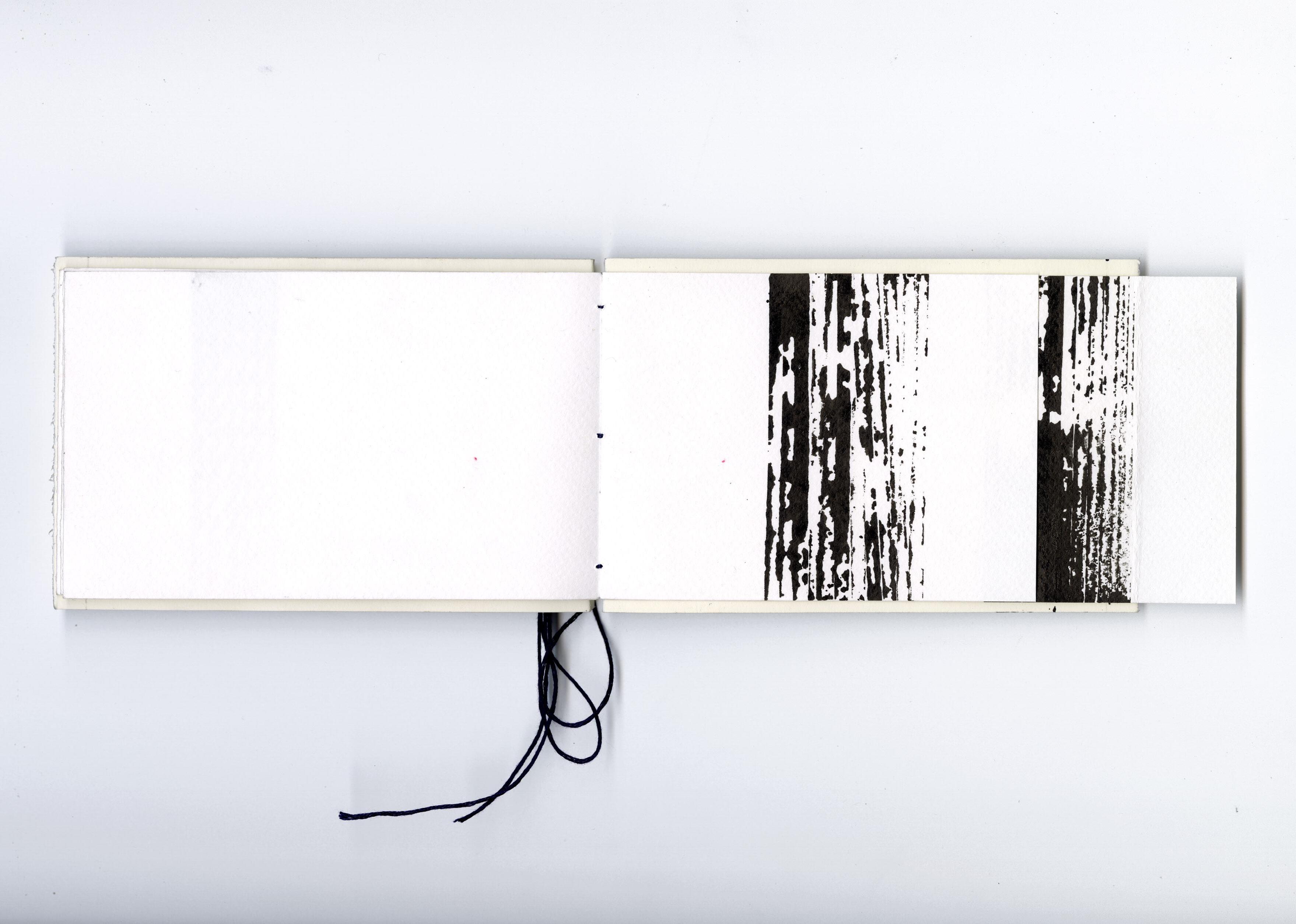 I had made a booklet for Peter to work in as well. It was simple, but also complex. The thread binding was experimental. I wanted to create a line pattern in the thread, similar to the one I made for Dineke. I started with a sketch, but ended up improvising. It didn’t go well.
