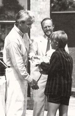 In April 1986 James returned to St Joseph’s College and was photographed with the then Head Boy, James Wimhurst, being presented with a mascot. He talked to the Sixth Formers and staff were so impressed they asked him to repeat the talk for the Fifth Form.